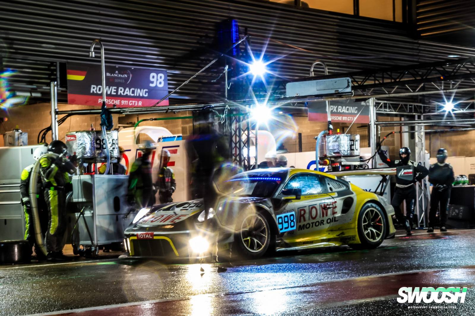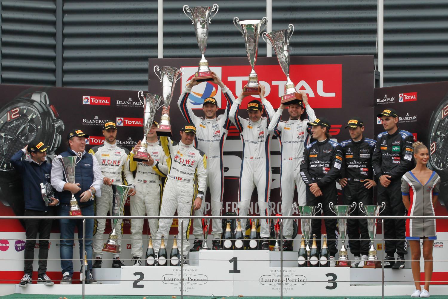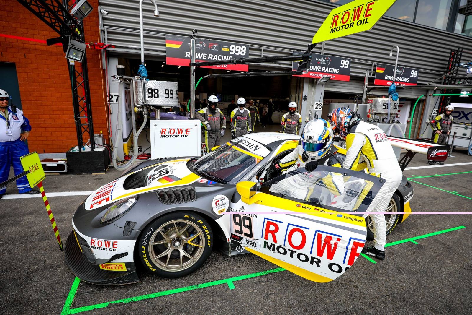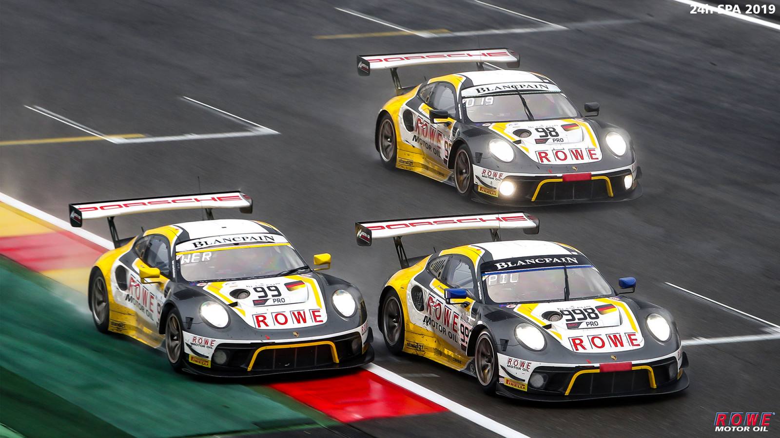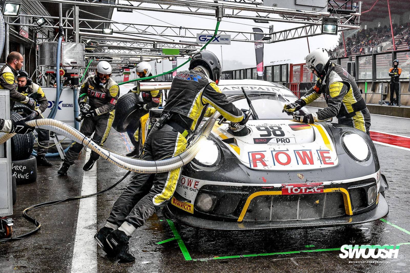 ROWE RACING連續第二年在傳奇的24小時水療中獲得第二名。經過與比賽的艱苦鬥爭,以及比利時阿登的大自然力量,保時捷的三位車手Nick Tandy(英國),FrédéricMakowiecki和Patrick Pilet(均為法國)經過一場精彩的過山車之後追逐表現讓他們在2016年之後僅僅在3.3秒的時間內為車隊贏得了第二場胜利。在#998保時捷911 GT3 R中,三人組合為保時捷完成了一兩項成績,並率先為車隊帶來了非常成功的表現。經過24小時極端惡劣的天氣條件和周日早上比賽中斷了近6個小時後,#98和#99賽車也在爭奪ROWE RACING,在第五和第七位置衝過終點線。