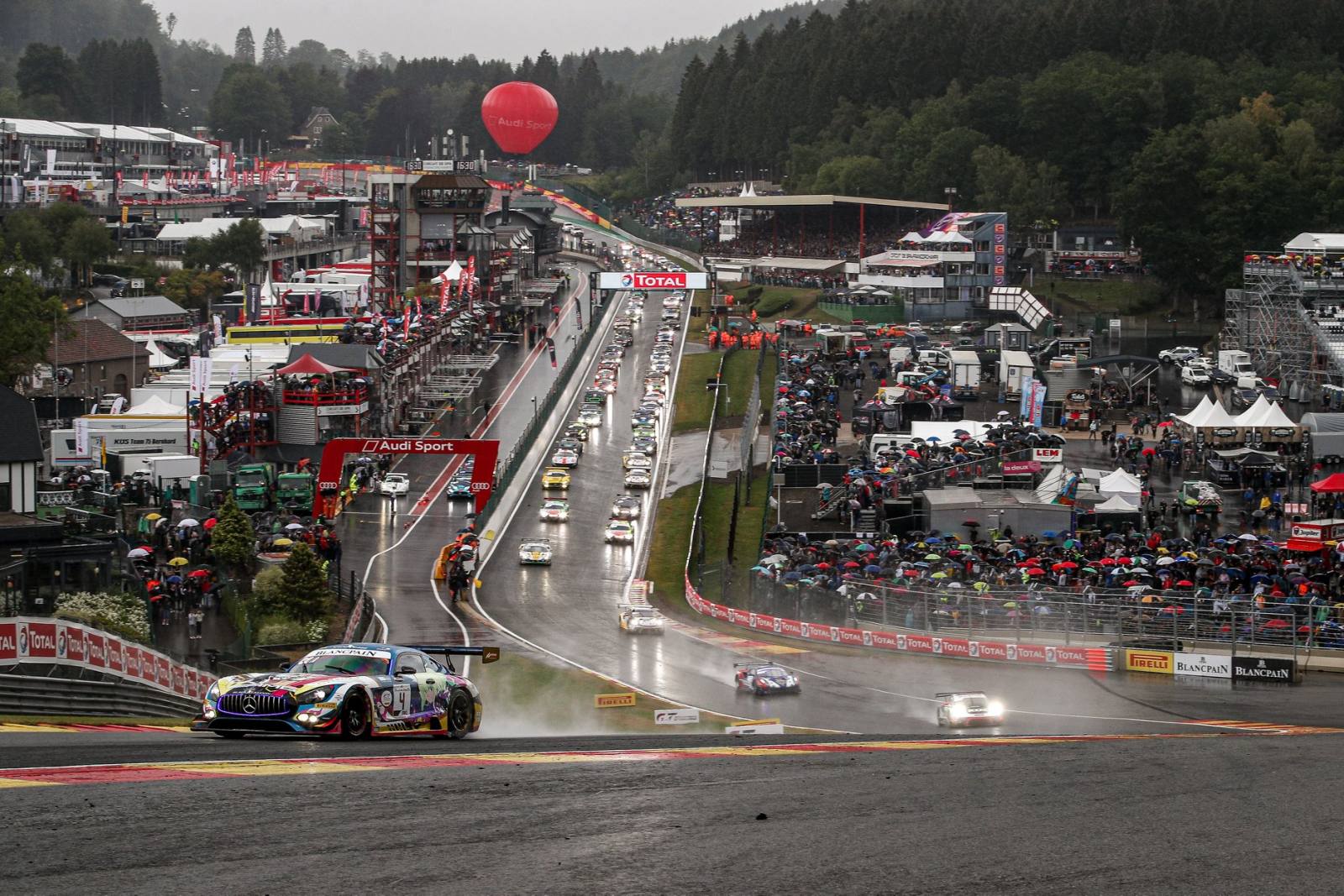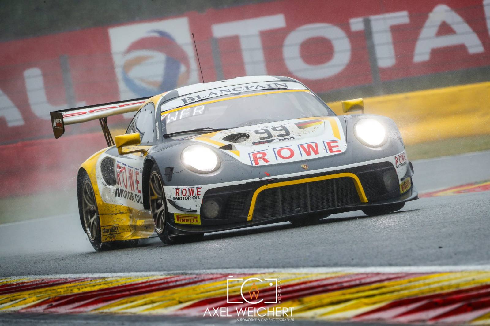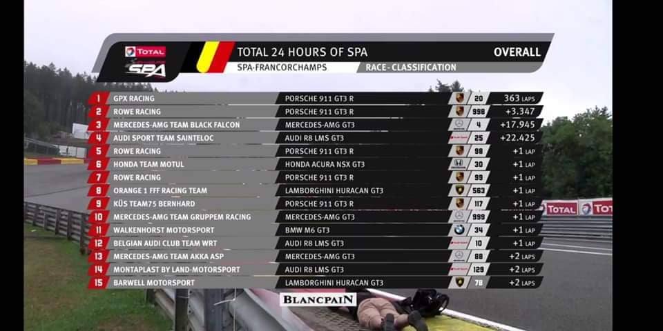 今年07-27和28日比利時SPA 24H比賽天氣真的很不好,幾乎都在雨中舉行雨胎用最多累死工作人員(比賽中車輛打滑衝出賽道最多).德國油廠賽車隊用3台Porsche 911 GT3 R參加比賽,998號替Porsche 911 GT3 R賽車站上頒獎台, Porsche GT3賽車已經很久沒有在SPA 24H站上頒獎台.今年比賽是考驗全隊合作默契,與要有點要靠運氣.