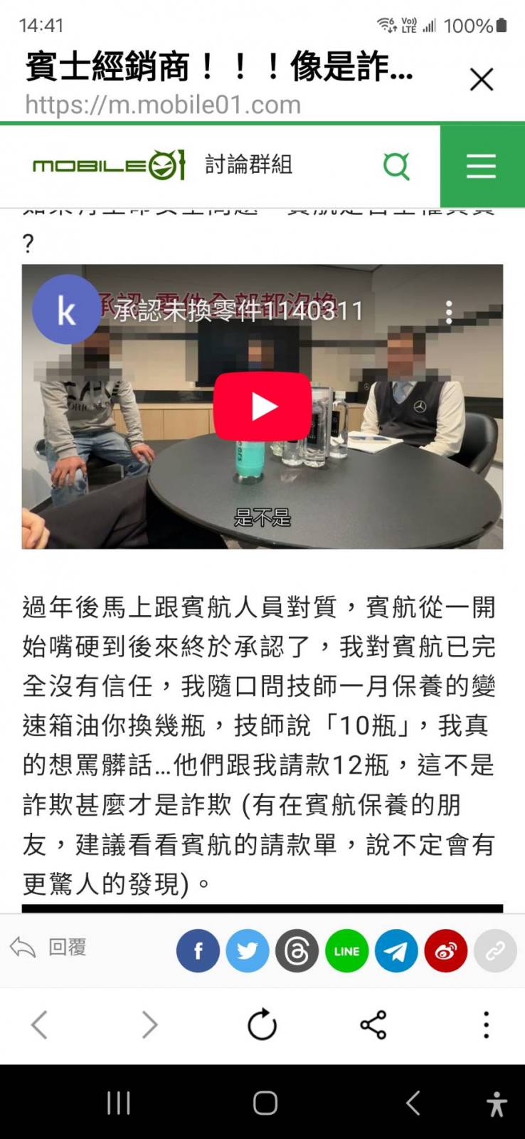 > 賓士經銷商更換9速變速箱油,向車主多收兩瓶變速箱油錢,做生意收費要實在,壞了自己商譽