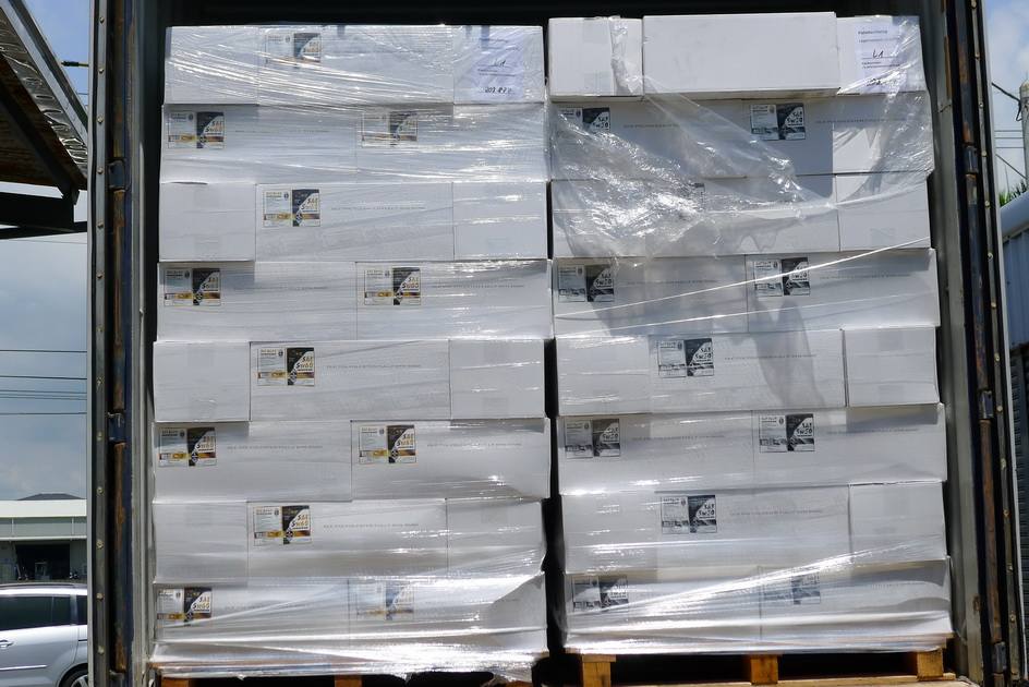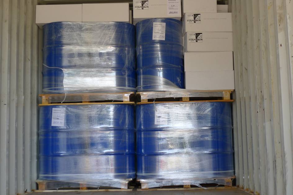 這次進口櫃子有被抽到要驗櫃,四年來第一次.是進口商有換進口執照才被抽到.感謝遠東報關行幫忙可以很順利出關領櫃,因有幾塊棧板沒有煙燻去年全世界規定一律進口棧板要煙燻防蟲蟲進入.只最外面兩塊沒有打上煙燻mark不然要拖去煙燻花錢又花時間,一切出關很順利才可很快可以拆櫃.拍下照片寄去德國請油廠下次要注意出櫃棧板.ATF-9004當天送去分裝這幾天就可以上市.