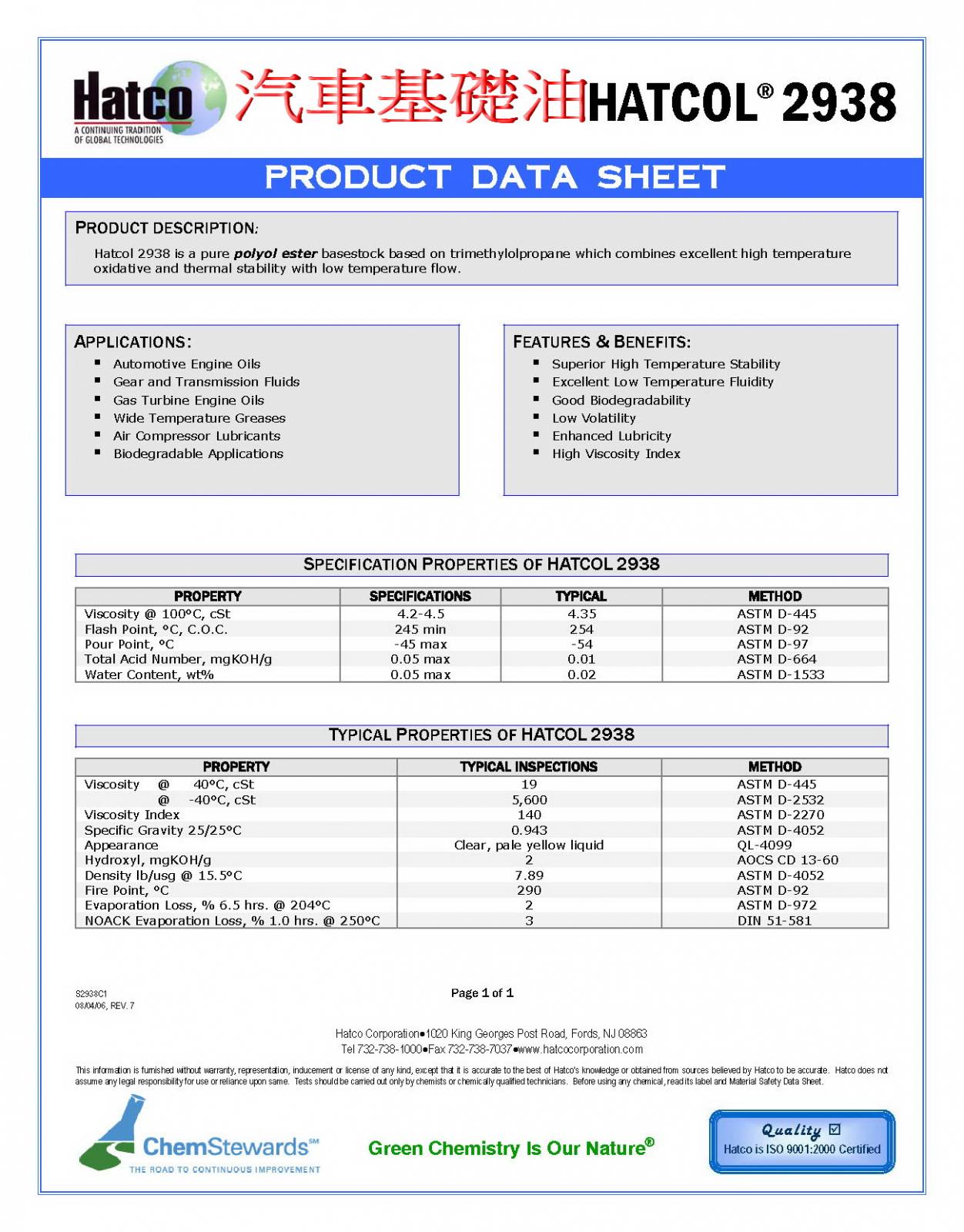 美國-HATCO公司是一家專門製造多元醇酯基礎油(POLYOL-ESTER)與幫客戶設計多元醇酯配方,在高科技基礎油它們是很專業.多元醇酯基礎油應用種類不少,HATCO公司在它們官方網站有提供基礎油技術資料供使用者如何採用何種基礎油須求----資料是公開的很詳細介紹其特色.我們有PO上圖片---是要看自己配合油廠願不願意開發新產品,有很高技術門檻. |