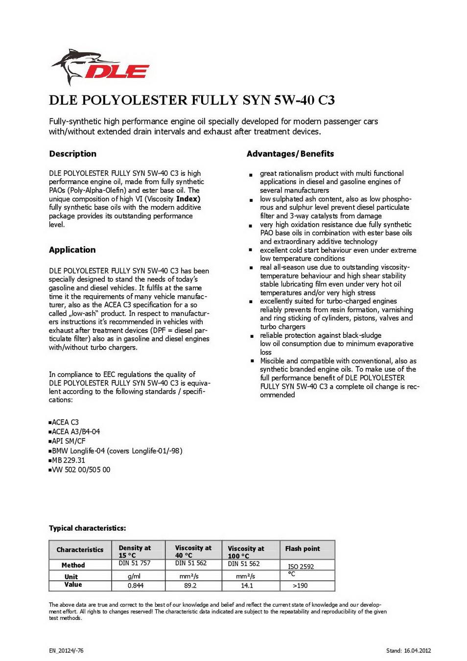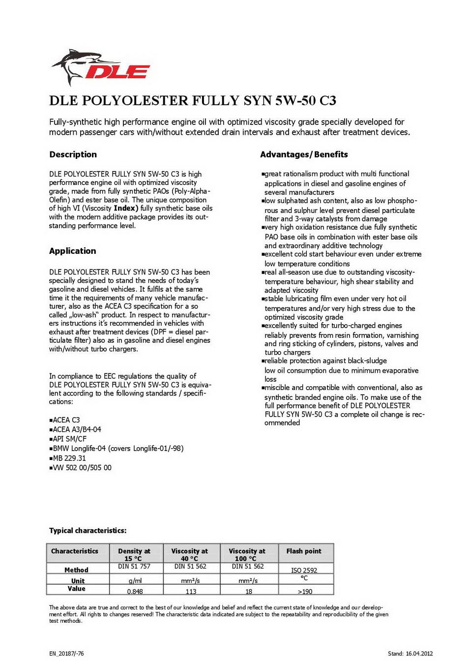 DLE-新產品(5W-50與5W-40)資料德國油廠已經傳來---國內首次突破汽柴油共用.
