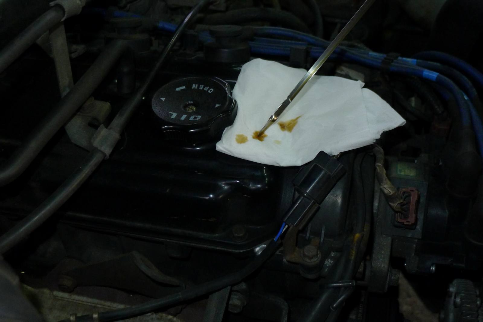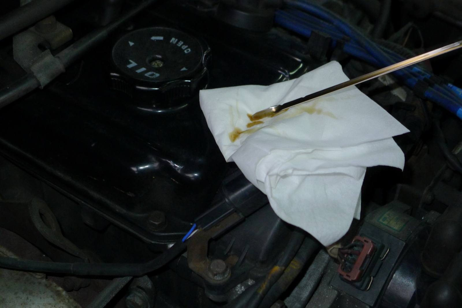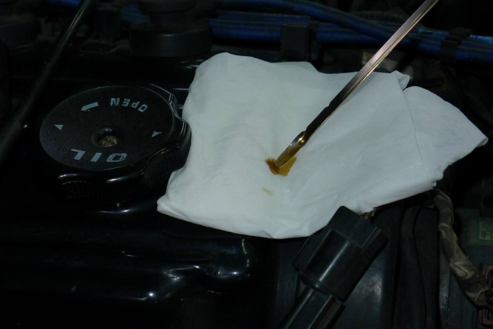 上星期六送貨至客戶那裡,順便請客戶幫忙拍攝.三菱FREECA-2000,2000-1-19自己公司業務與送貨南北奔波已跑了拾貳年,只加兩種油:1-之前經銷德X牌造成卡油泥.2-自己進口德國德力機油2007年開始銷售至今.邁入第五年了機油品質好壞真的差很多,機油品質是要求出來的不是認證出來的.多元醇酯機油品質真是沒有話說,品質值得信賴.以下圖片是3000KM拍攝(已經快接近三拾五萬公里),車友自己去評鑑不用我多說,每次機油尺拉出就是這顏色機油品質很穩定,表示多元醇酯機油耐高溫.機油上蓋至今五年沒有在漏油,之前已經換了三個引擎上蓋回三菱原廠換的,差別在這裡.感謝德國油廠替我們研發那麼高級機油也是台灣車友與店家之福氣------