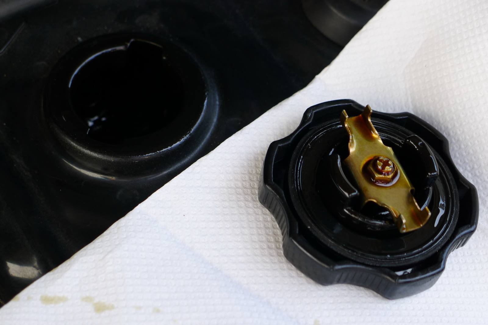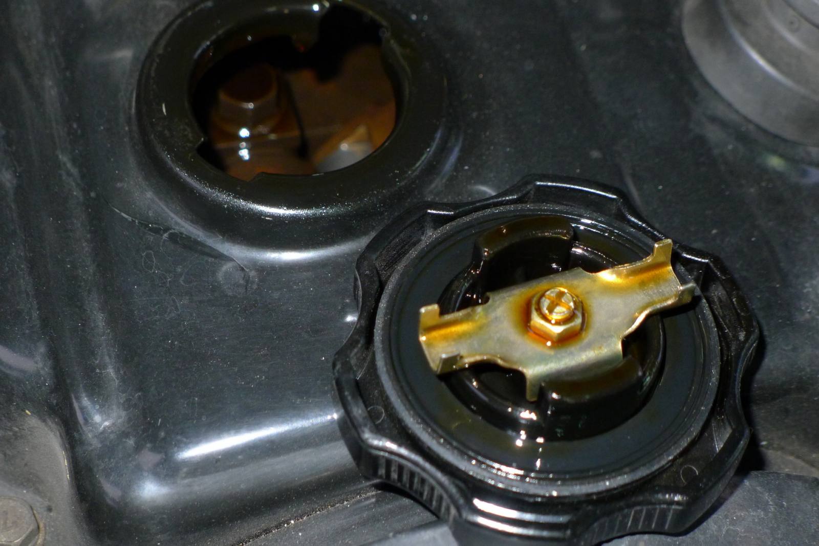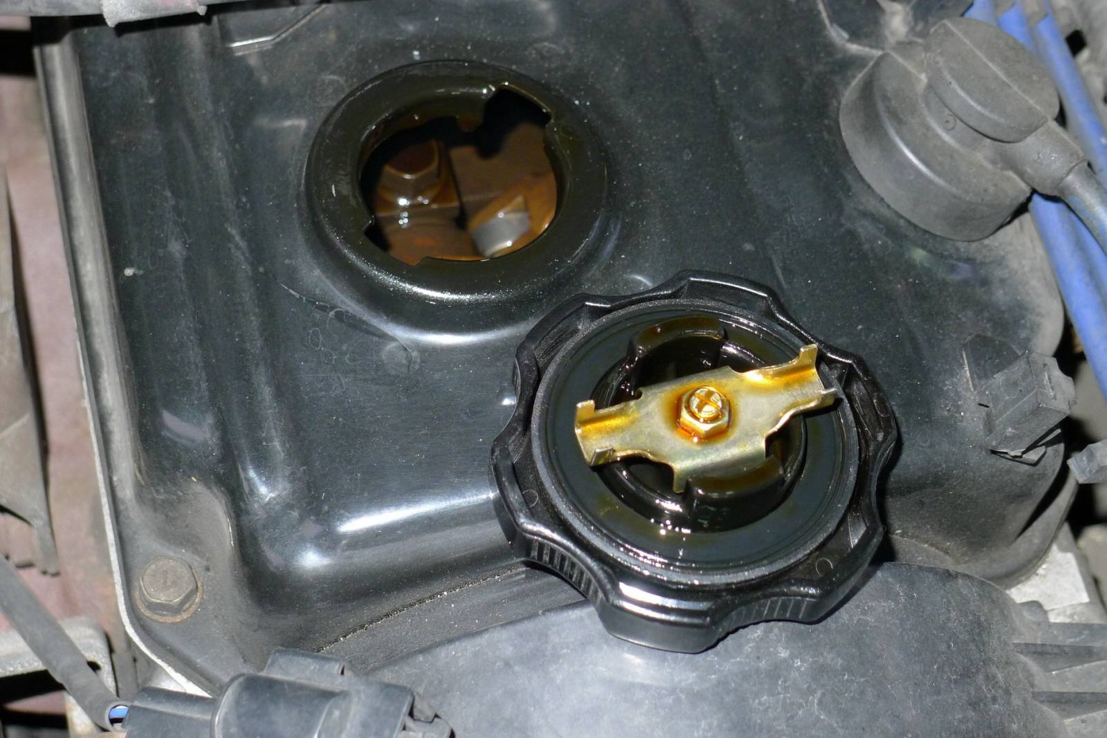 上星期六送貨至客戶那裡,順便請客戶幫忙拍攝.三菱FREECA-2000,2000-1-19自己公司業務與送貨南北奔波已跑了拾貳年,只加兩種油:1-之前經銷德X牌造成卡油泥.2-自己進口德國德力機油2007年開始銷售至今.邁入第五年了機油品質好壞真的差很多,機油品質是要求出來的不是認證出來的.多元醇酯機油品質真是沒有話說,品質值得信賴.以下圖片是3000KM拍攝(已經快接近三拾五萬公里),車友自己去評鑑不用我多說,每次機油尺拉出就是這顏色機油品質很穩定,表示多元醇酯機油耐高溫.機油上蓋至今五年沒有在漏油,之前已經換了三個引擎上蓋回三菱原廠換的,差別在這裡.感謝德國油廠替我們研發那麼高級機油也是台灣車友與店家之福氣------