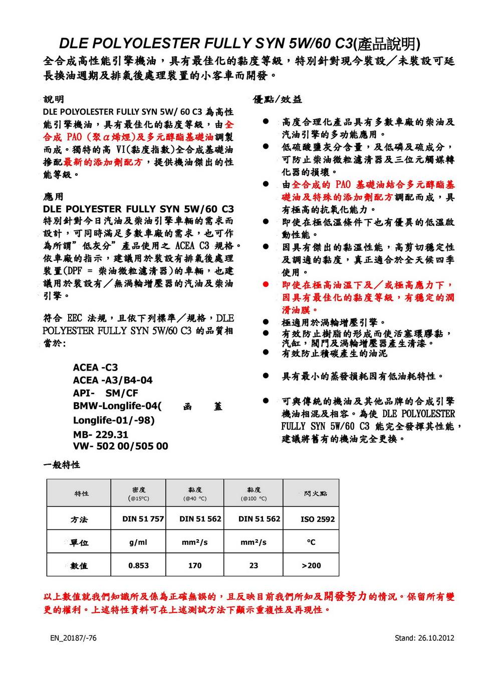 > 全世界首創應用多元醇酯基礎油-開發出高黏度C3機油(汽柴油通用).