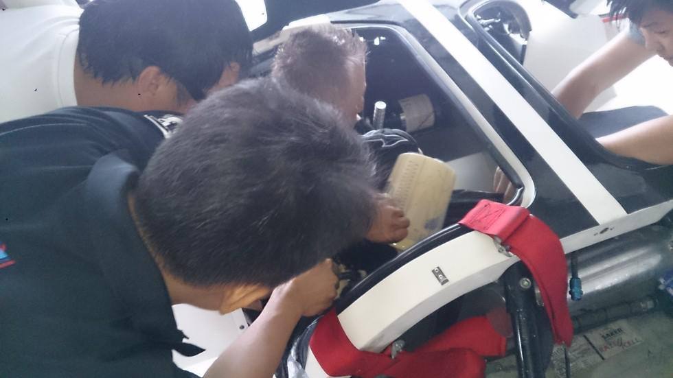 這兩天黃董與工作人員和外國教練在大鵬灣試車,黃董風雨無阻辛苦他們,確實改為400HP真的是差別很大.黃董很滿意改這樣馬力,主要此車引擎室空間很小,增加一些散熱部品不容易放置.所以荷蘭原廠不願意改的原因,要改費用也是很高.期待比賽來臨.