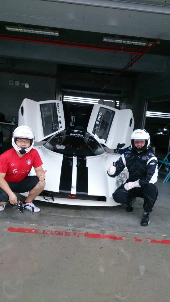 因為工作的關係,每日都與富士重工的引擎為伍,所以自SAKER進來台灣的消息發佈後,就一直對這款車充滿興趣,感謝知名煞車系統Brembo及世界頂尖賽車部品Sabelt的總代理--豐年俐公司,給我們機會打造動力及參與測試,還找來歐洲知名賽車隊的老闆及教練,針對車輛管理與賽道測試方面給與支援,所以小弟有幸能坐上由荷蘭教練所駕駛的SAKER在賽道上飛奔,試乘及試駕的車款是86號車,配有序列式變速箱,一坐進駕駛艙,完全斯巴達風格,一切都是為戰鬥,絨毛漆中控台,沒有空調,坐姿就像方程式賽車一樣貼地又後躺,方向盤握感及回饋感紮實,AIM賽車儀表及GPS攝影計時器全都配在車上,跟以往駕駛自家Impreza比賽車有很大的不同,除了Sequential gear box檔位銜接神速外,最直接的感受就是底盤及方向機構,前後雙A臂,後輪驅動,沒有動力方向盤,精準的轉向比,過彎時配上水平對臥中置引擎配置,重心低且集中,前輪在導向的同時,車尾瞬間跟上,完全不拖泥帶水,側向G力強,但懸吊吸收及支撐性很好,彎中信心很高,車身動態很良好,車子幾乎是黏在地板上,而於大直線時,拜序列式之賜,加上豐年俐公司特地選用大鵬灣專用齒比,換檔後轉速不易掉,剛好是渦輪出力的甜蜜點,大直線加速全段不軟疲,非常銷魂,而當我改坐副駕,教練一開進三號我就後悔了,心想馬上下車,那個彎中的G力讓人太不舒服了,而在小直路時也非常懊悔自己把動力做這麼大,那個加速度,如果不是自己手握方向盤或閉上眼睛,真會讓人想喊媽,外國賽車手坐飛機來台灣是忘了帶心臟來嗎?很多在開自家比賽車時需要點煞車的彎,我開SAKER只要收油就能過,但教練應該是知道我體重能壓住車子,很多我收油就過的彎他居然補著油門走,車外還下著大雨,卻不見轉向過度或側滑,車身相當聽話,教練方向盤指向哪,車就進攻哪,像把銳利的殺彎手術刀,越級的底盤設計,讓離心機這詞真不是噱頭,接著又是四天的測試及黃老闆安排的賽車課程及車輛維護技術課程,以一個車商同時又是賽車愛好者而言,確實有心又用心,車主買車可以安心售後服務,也可以利用原廠提供的課程來精進自身的駕駛技巧,而車主以外的朋友們也可以用實惠的價格參與SAKER課程,於賽道中租駕SAKER,並取得賽手證,為自己的夢想付出行動,取得為夢想付出努力的證明書!