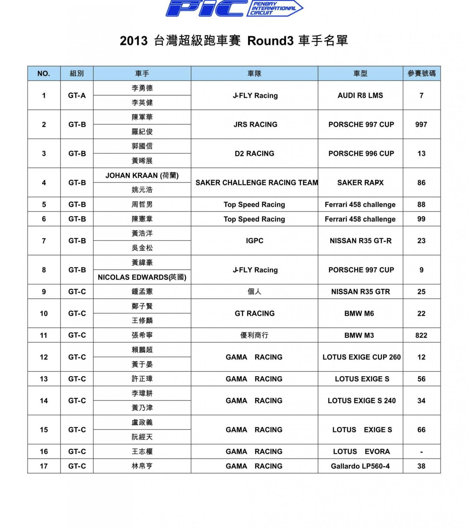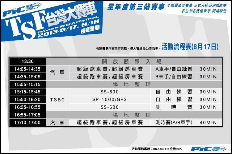> 2013TSF台灣大賽車第三站 8/17~8/18極速拼戰大鵬灣!