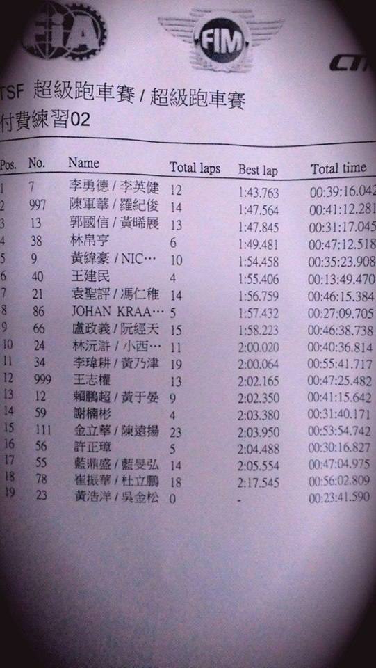 林董您好!我是WILL,非常感謝您長久以來的支持,本次台灣大賽車失利,及日亞或許讓您對SAKER失去信心,但SAKER畢竟在本次比賽有做出1分44秒,只是沒有列入紀錄。
