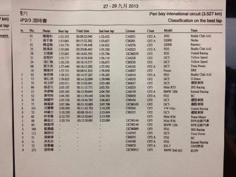 恭喜長紀贊助車手—翁志元駕駛MINI COOPER S R53於今日9/28 OP盃GP3組別排位賽奪得「第一」標竿— 和古步煌在專業MINI改裝﹣長紀貿易