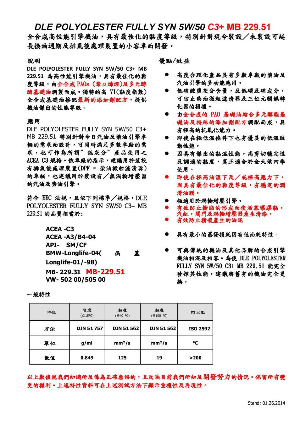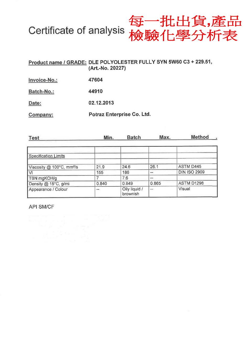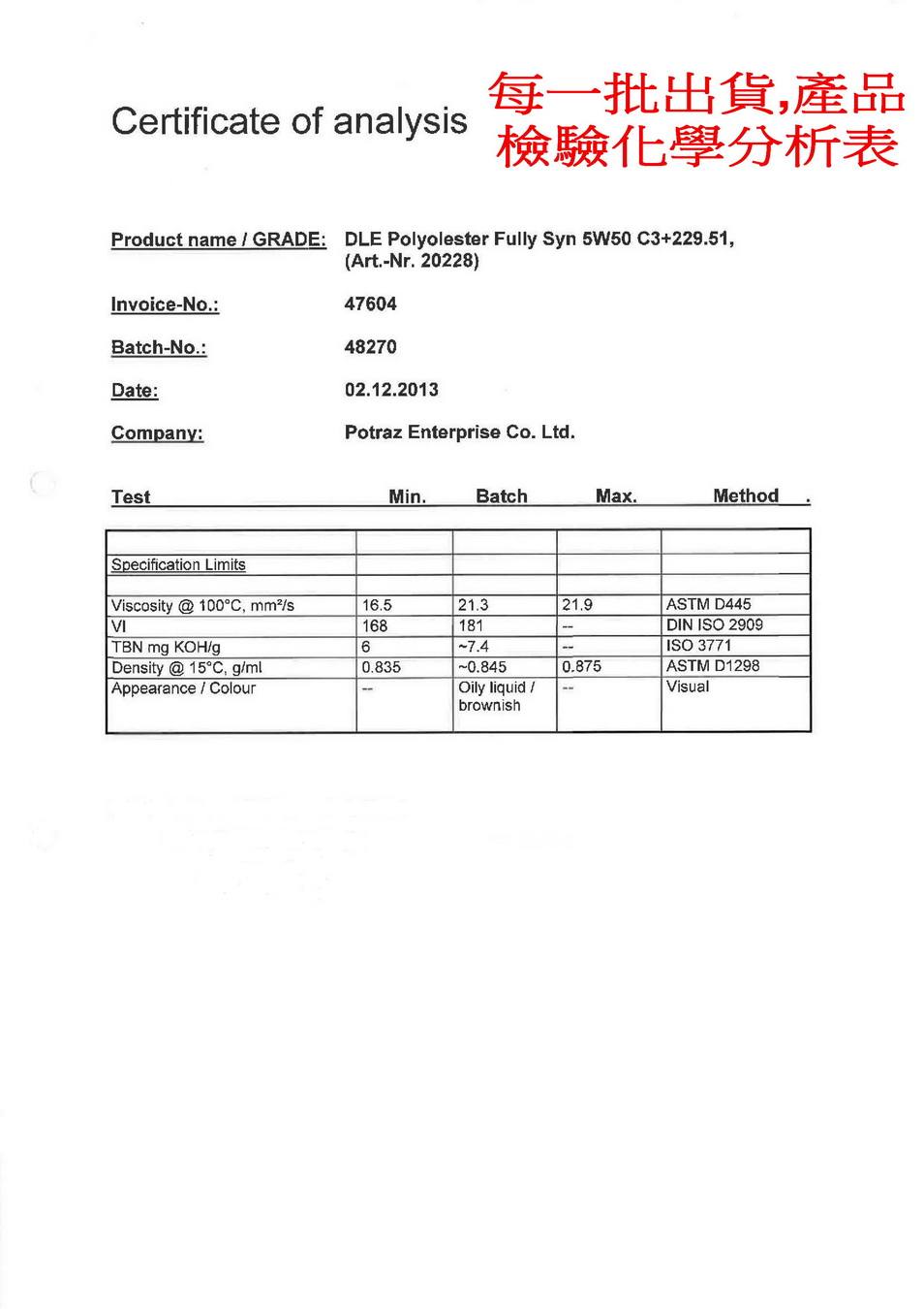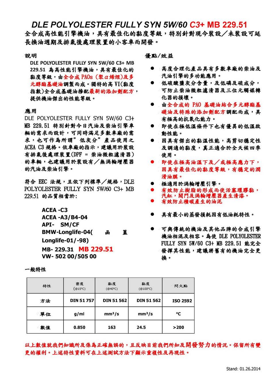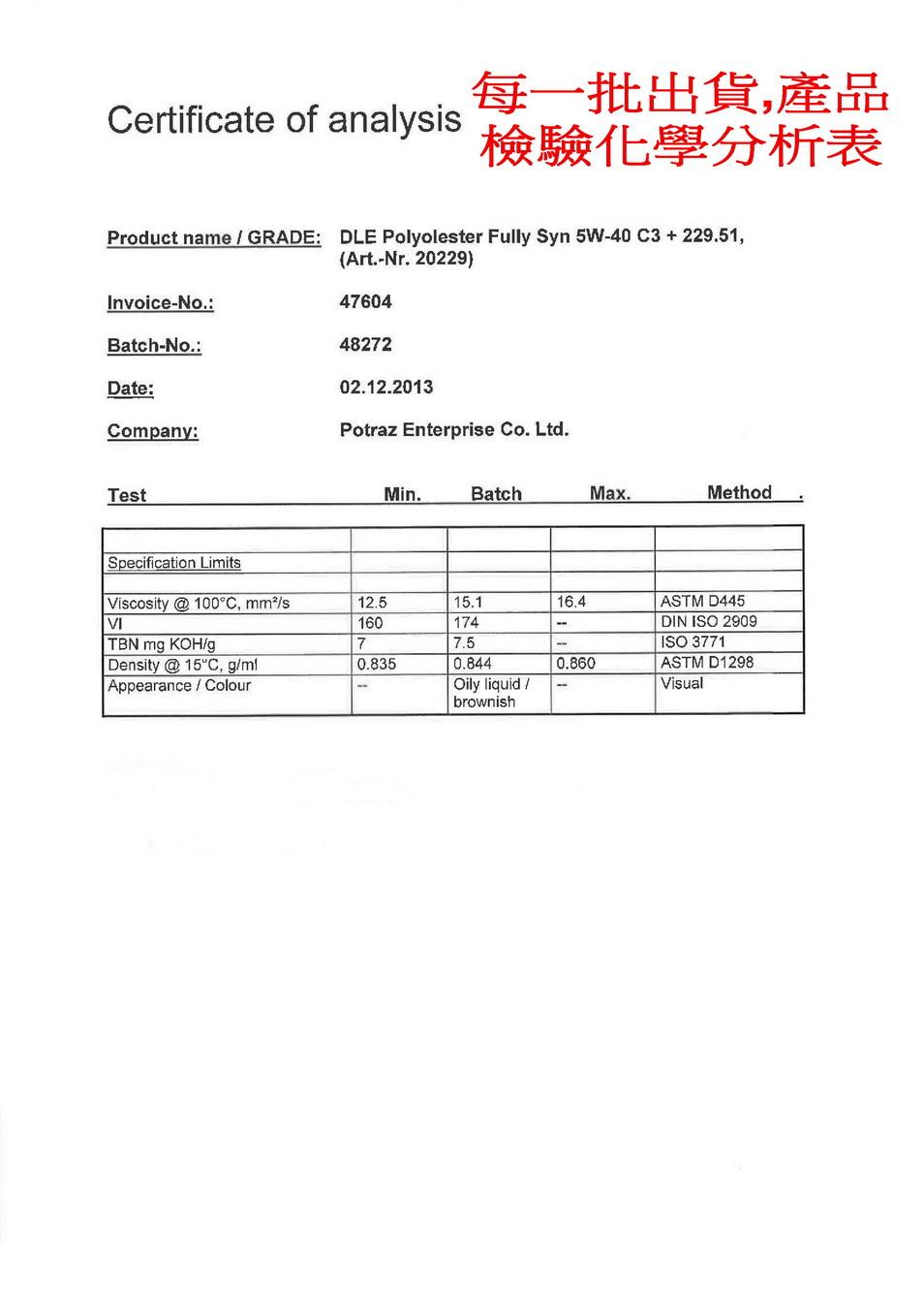 DLE—C3+ MB-229.51這次引進新產品,就是德國油廠提供Nürburgring賽道比賽同步,多元醇酯賽車機油新配方.
