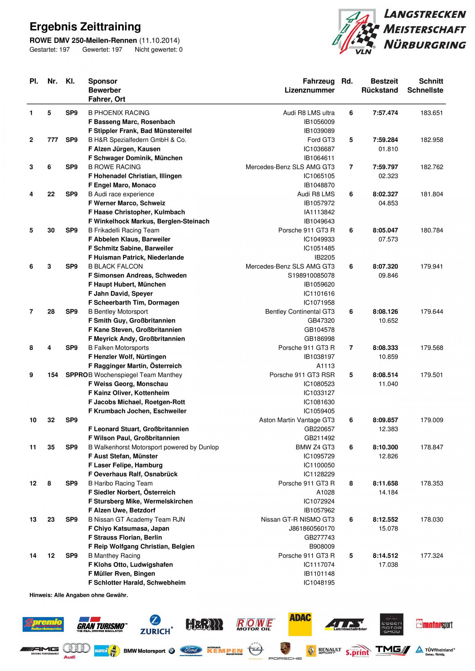 > 突破7分鐘大關--VLN 11.10.2014 - ROWE DMV 250-Meilen Rennen