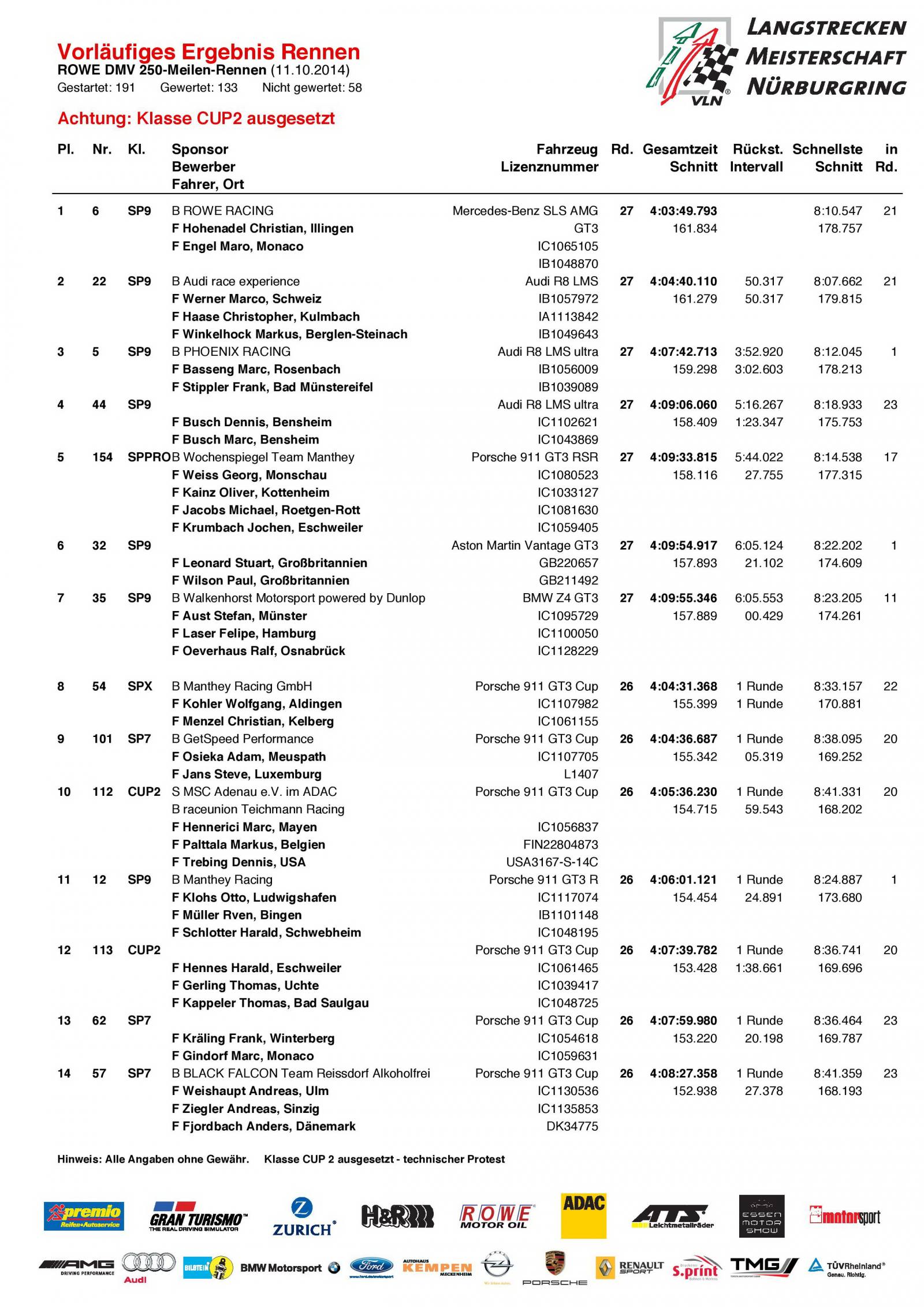突破7分鐘大關--VLN 11.10.2014 - ROWE DMV 250-Meilen Rennen