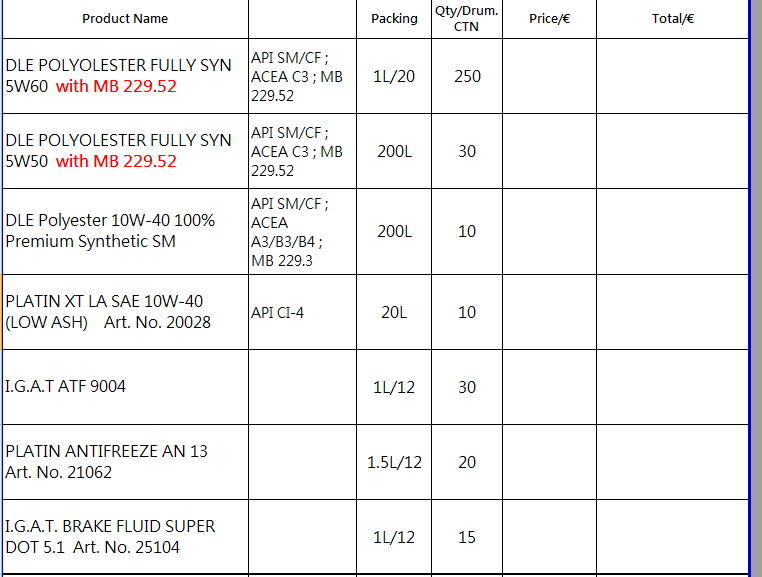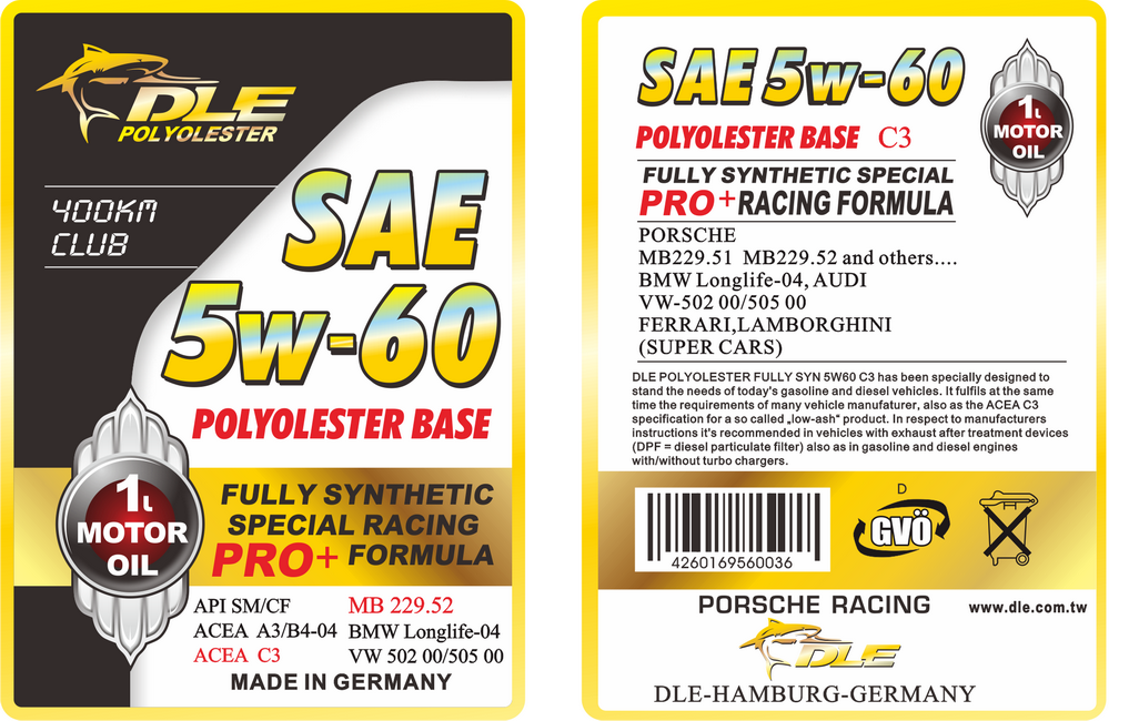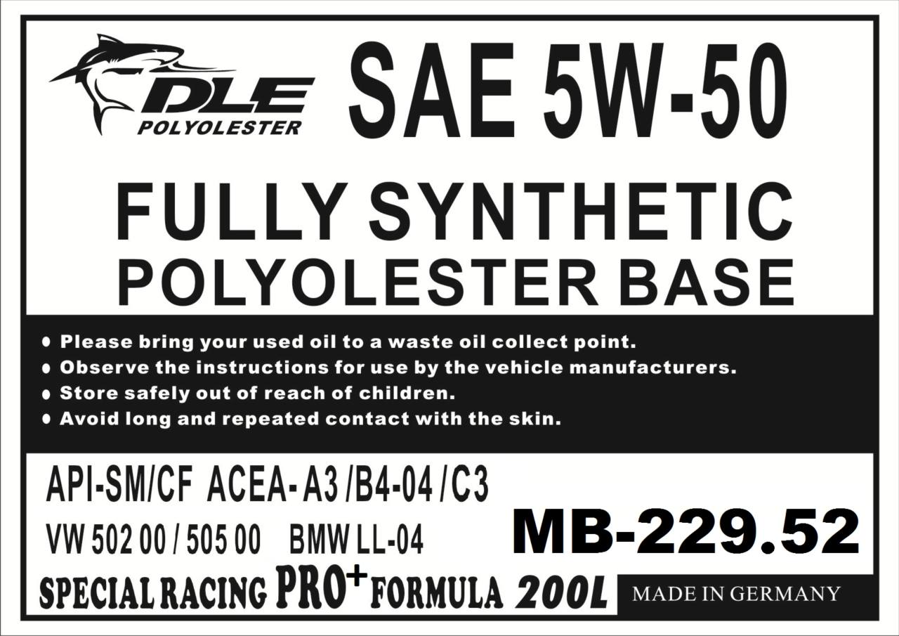 世界首創-努力向德國油廠爭取MB-229.52產品升級,從拒絕到最近下訂單願意替DLE做出高黏度MB-229.52機油.已經向德國油廠交涉好幾個月,終於願意製造給我們特殊的規範5W-60 C3 MB-229.52與5W-50 C3 MB-229.52這兩種產品先生產.另全世界的油廠傻眼,整麼可能有MB-229.52高黏度多元醇酯機油.真的是世界首創展現德國油廠研發實力,來自賽道比賽研發實力.