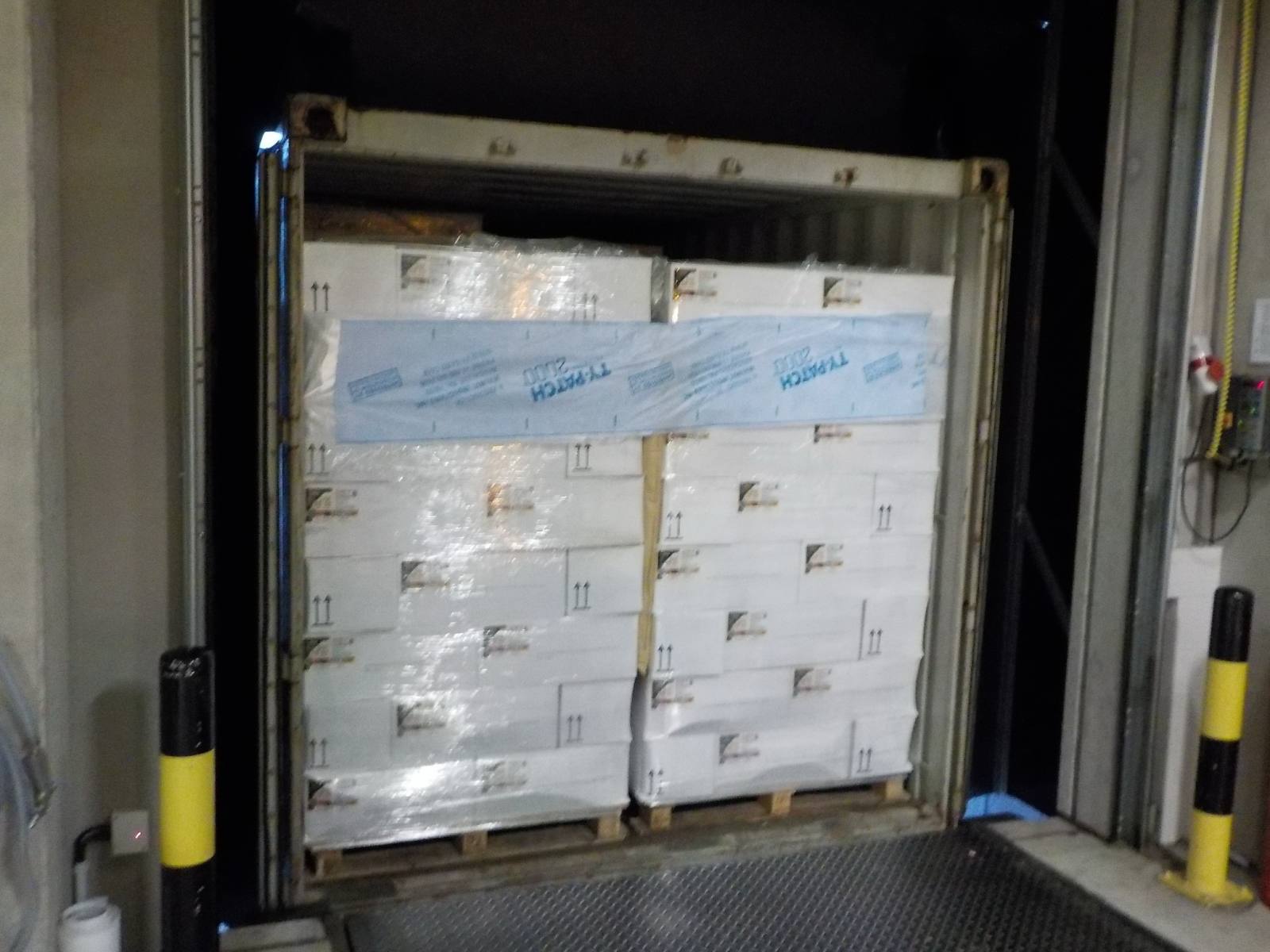 1月26日下午拆貨櫃第一次看到棧板與棧板間用空氣袋隔著,以免船運途中震動利害傷到油品看到德國油廠出貨對高級油品的尊重與保護---