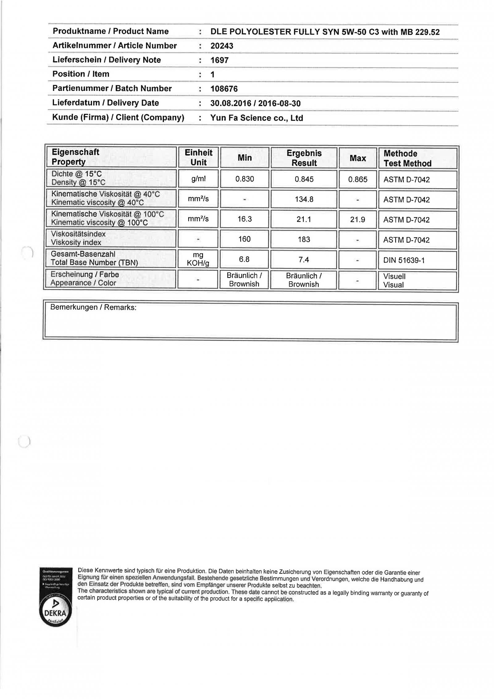 選擇品質提升是最吃力不討好國外配合油廠也最不願意,怕麻煩配方要不斷去研發調配.原廠認證機油就不用那麼麻煩已經制式化,下訂單就可以迅速出貨.我們DLE客制化產品德國油廠調配好出貨給我們,到台灣自已測試品質德國油廠不幫你測試.不滿意在去信告知那裡需要改進信中要詳細說明,這是客制化訂購機油要自已承擔的風險.長期已經習慣這風險因為德國油廠這幾年研發功力真的很強,每次產品要求升級都令我們店家與車友滿意---
