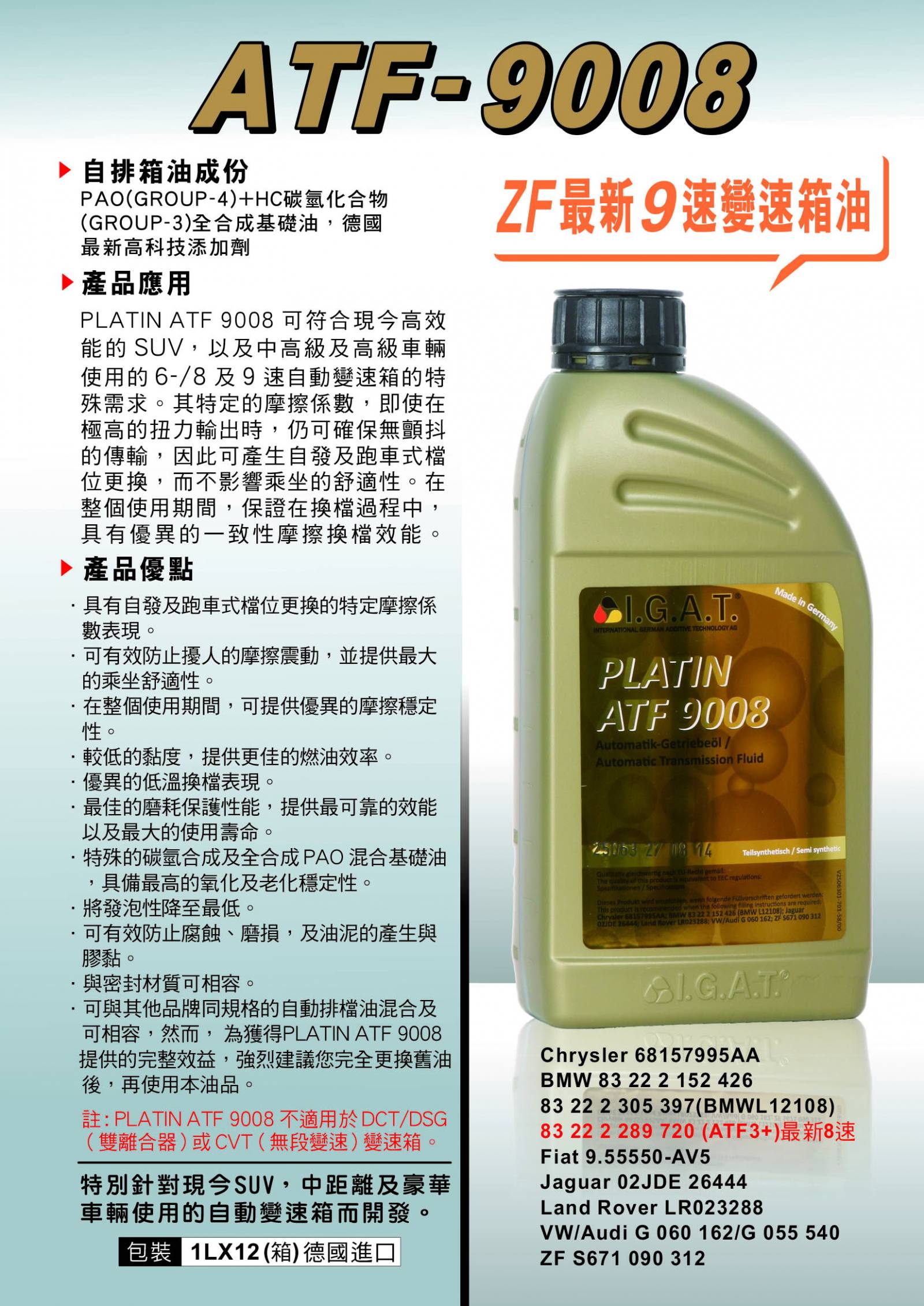 好朋友7月初才換2014年Porsche Cayenne S八速 Tiptronic S手自排變速箱二手車還有原廠保固,遷車一定要把車上所有原廠油品全部更換德力提供的產品他才放心.這段期間請原廠技師幫忙問比較重要油品要使用幾瓶與振意順材料行提供8速變速箱濾網和墊片與變速箱油那一種自排油原廠只有零件料號.還有加力箱油跟振意順拿其他附屬油品我都有,機油,變速箱油,差速器油前後,方向液壓油特殊,煞車油與水箱精,使用德力提供最新最高級產品.昨天保養好車主打電話給我說開起來只猛字形容像一匹野馬,原廠油品開起來病貓差別很大車主說變速箱換擋差別最明顯換擋銜接頓挫感很小,之前換擋頓挫感很明顯加力箱電磁閥有故障沒有零件更換車主開起來只有爽字形容.這樣爆發力才像開保時捷車,因為前一台BMW X5也是買二手一直用原廠機油產生油泥嚇到了X5也是全車用德力產品從病貓變成一匹野馬.他才相信外面好油跟原廠油品差別那麼大這台保時捷車行要拿原廠給他,他說你們留著自已用我要用最好的油品.他只相信DLE產品----