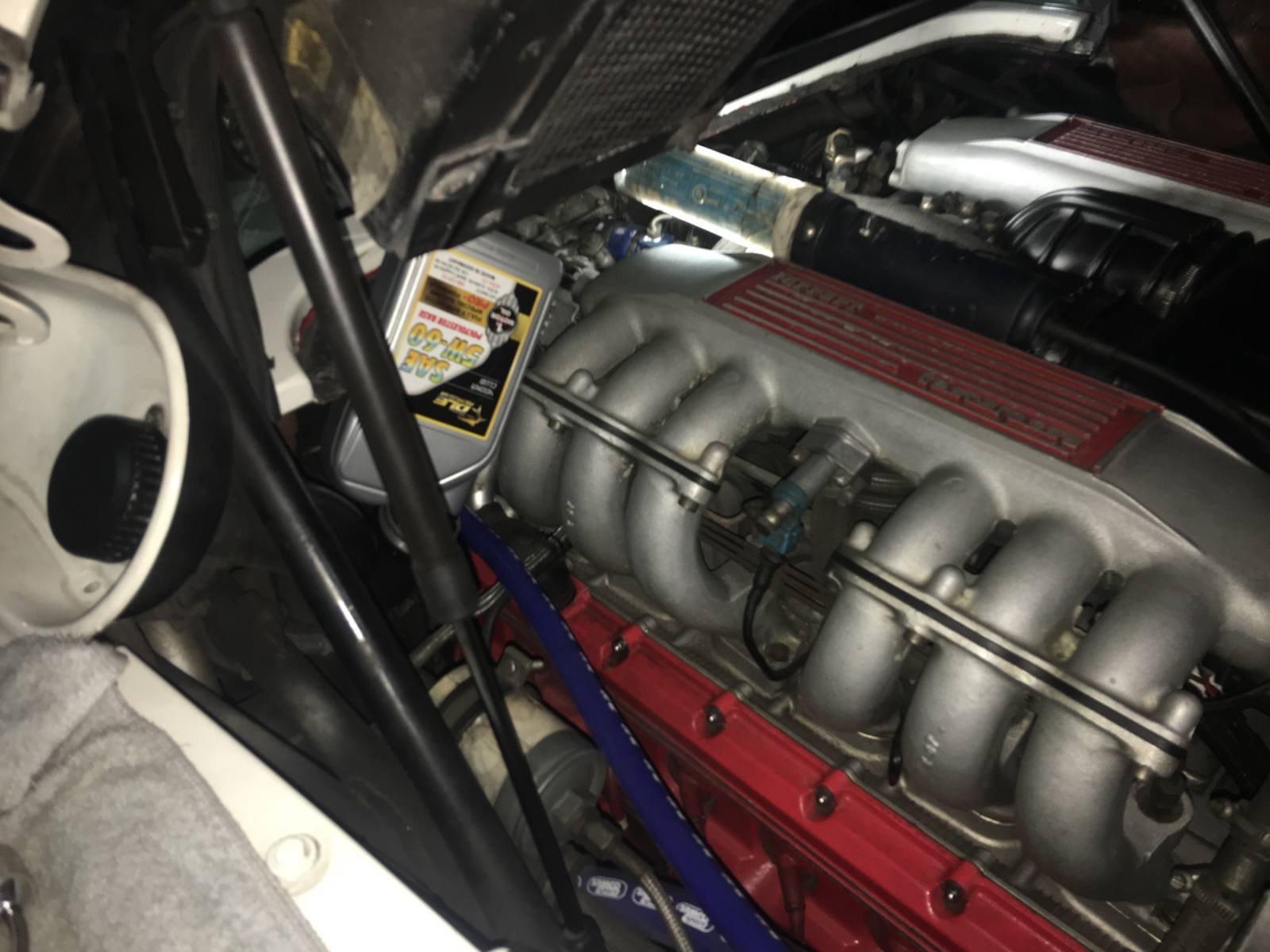 最遠的客戶花蓮信捷車業林老闆法拉利超跑老車保養更換機油,V12引擎一次換油量要15.5瓶保養這種引擎才夠癮。車主指定要DLE 5W-60機油夠車主激烈操駕,店家辛苦經營汽車保修市場真的不容易--