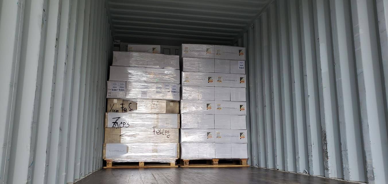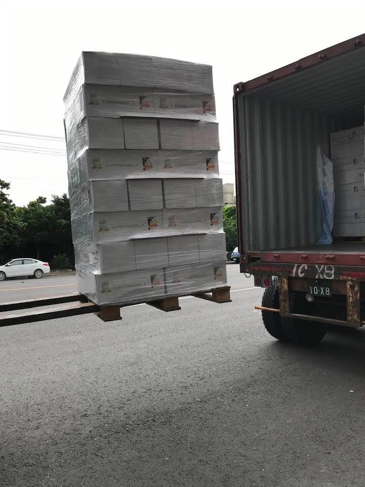 拆貨櫃,遇到下雨有輕颱要經過,還好機油紙箱好沒有淋到雨.這次5W-60機油包裝密封的很好.(半小時做業就把機油棧板卸下來)