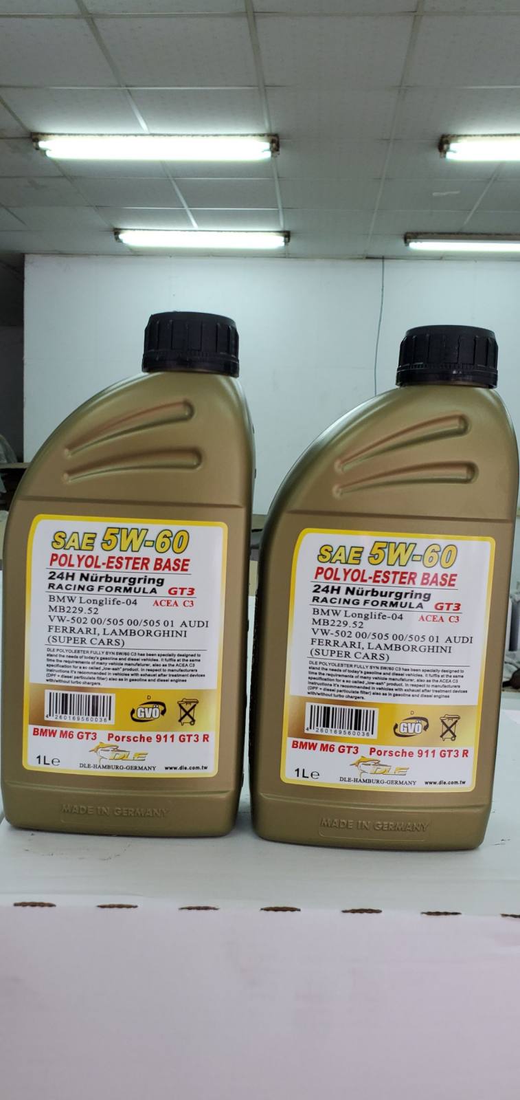 昨天新包裝5W-60機油拆箱,瓶子包裝與標籤製作,看起來令人滿意.以後由德國油廠處理,成本貴一點值得.