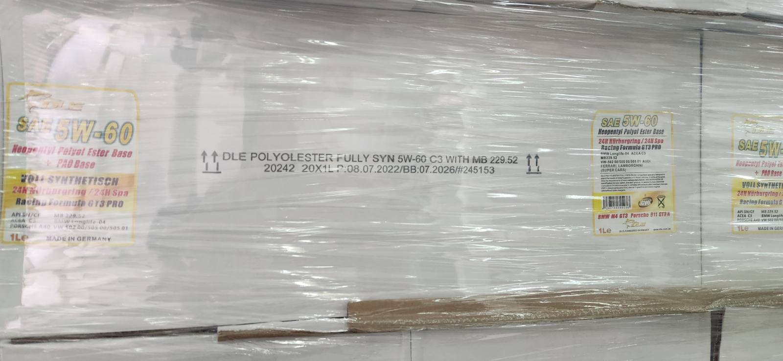 這次德國油廠裝櫃沒有拍照,5W-60 24H GT3 PRO貼標,寄來是舊貼標.擔心貼標印錯.