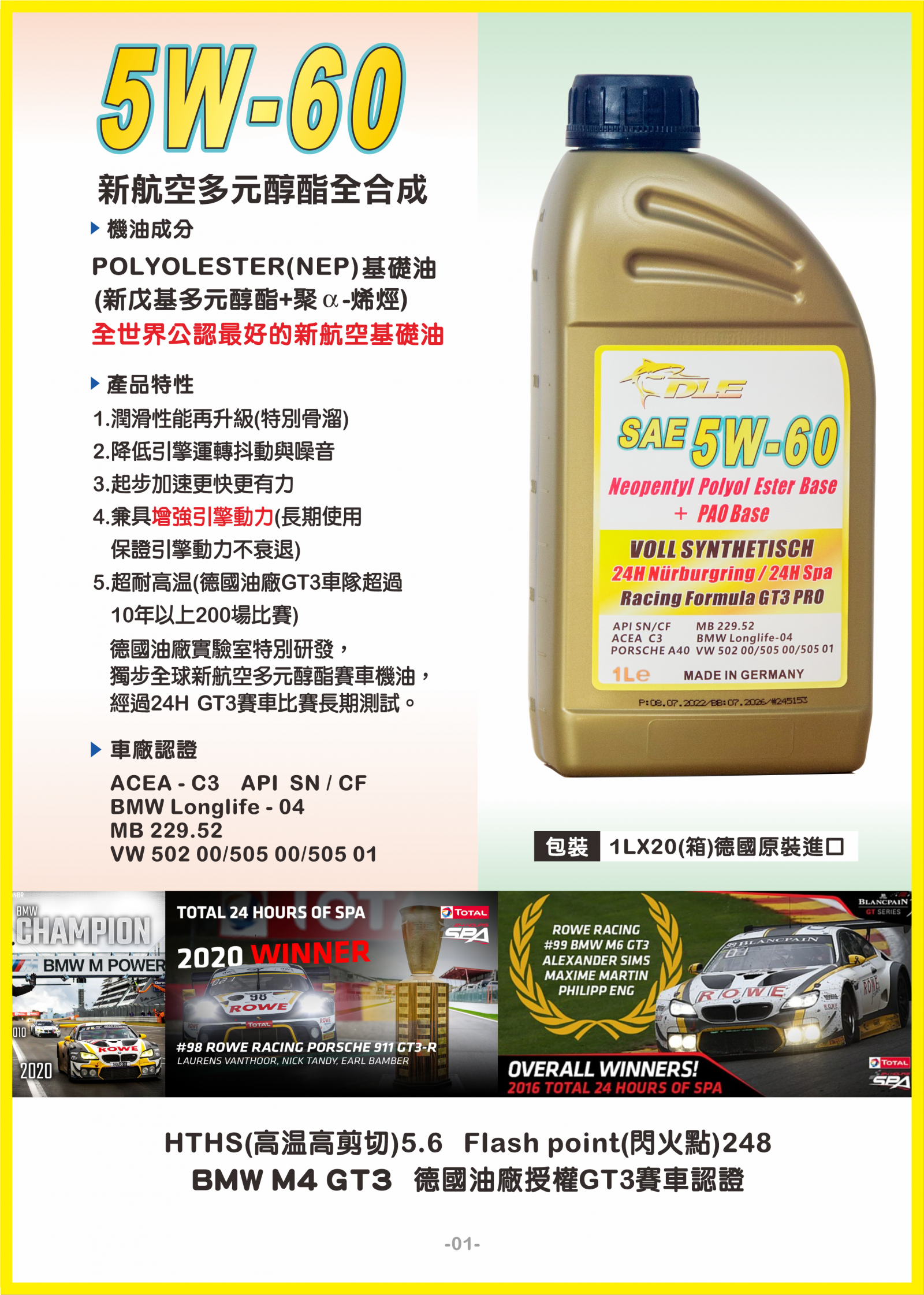 > 不同凡響-新航空多元醇酯賽車機油5W-60 24H GT3 PRO機油,正式上市