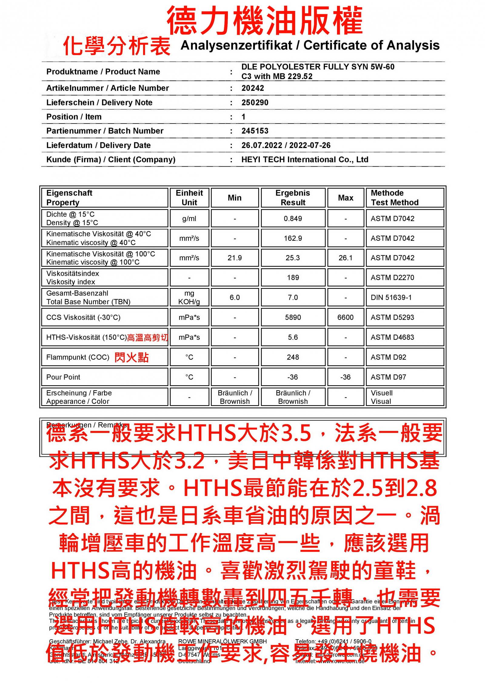 HTHS高溫剪切與Flash point 閃火點,以後每一批機油進口都要檢測,附上產品分析表,多花1萬多元。