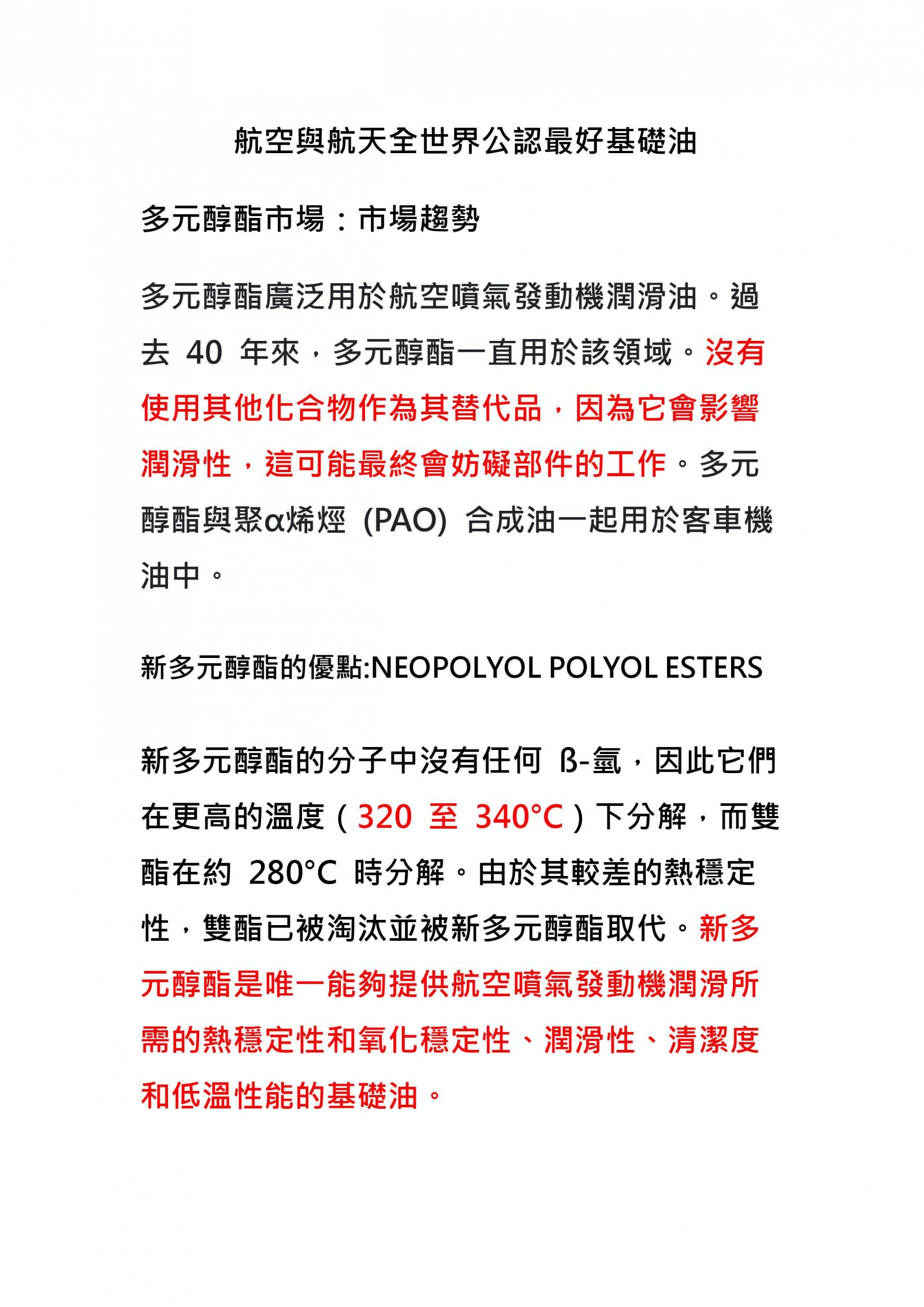 但很難有機油可以,(1-潤滑度要夠,2-又要耐高溫,3-還兼備增強引擎動力,這沒有相當功力的實驗室是做不出來多元醇酯機油)