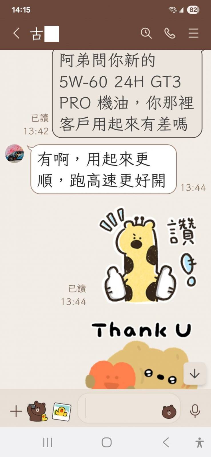 今天長紀汽車的小老闆和我叫貨,順便詢問小老闆關於新的5W-60 24H GT3 PRO機油,MINI和BMW的車主使用效果如何,小老闆回覆我說車主的回饋都很好。 長紀汽車古老闆逐漸的把事業交給大兒子,和阿順師父去做。 小老闆對機油品質的概念不錯,有古老闆和阿順師父在旁邊教他。 選擇品質好的機油,不是優先選用以價格為主導的機油。 他也會主動詢問車主機油使用前後感想,車主都會給予德力機油良好的評價,他也極力推薦德力機油給車主使用。 商品好就留得住車主,也就有生意可以做。 長紀汽車每次訂購就是100百箱5W-60 24H GT3 PRO 機油,算一算時間也差不多快用完了。 非常感謝古老闆長期以來對德力機油的支持與信任。