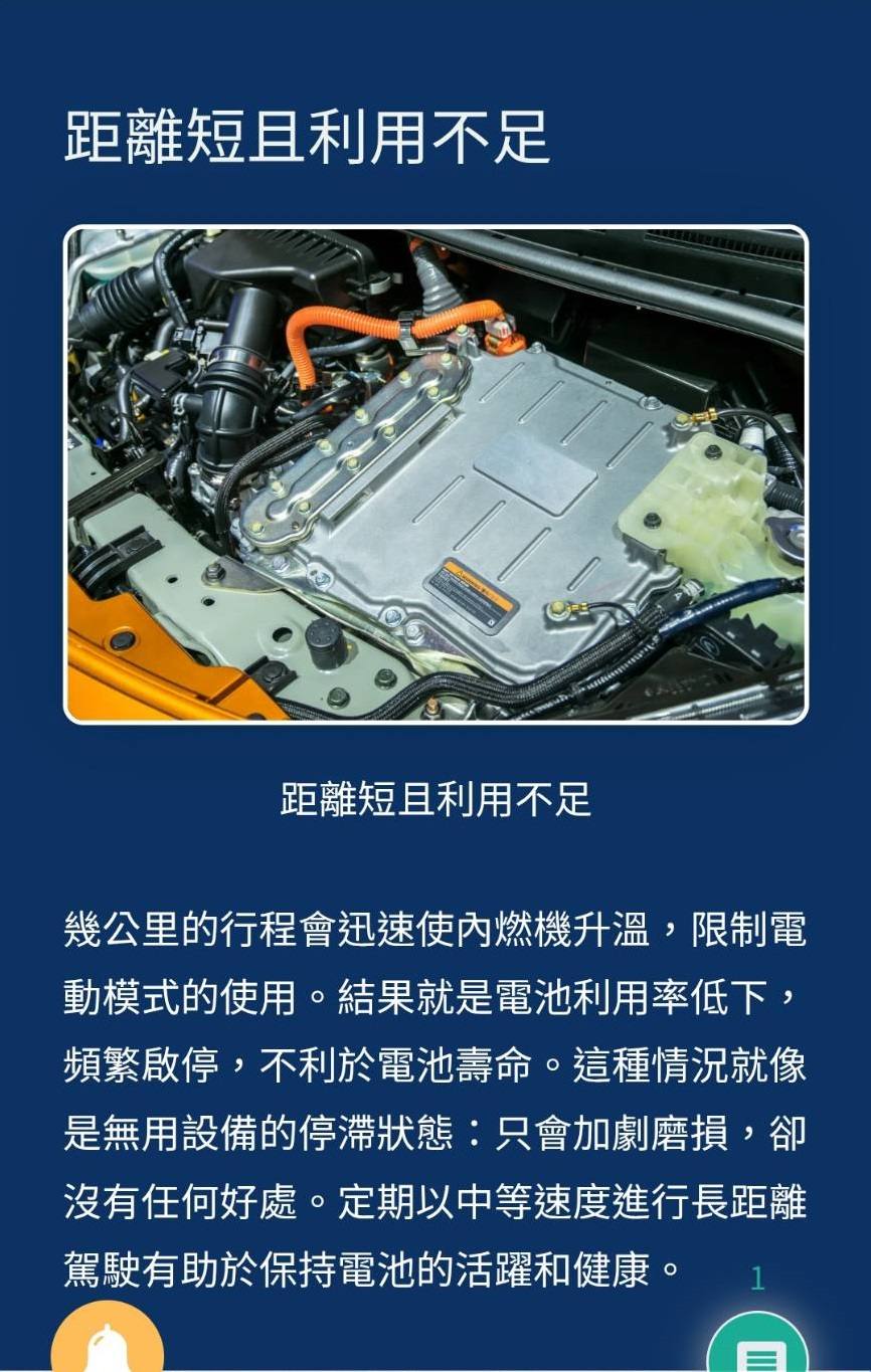油電混合動力車不適合短途行駛。