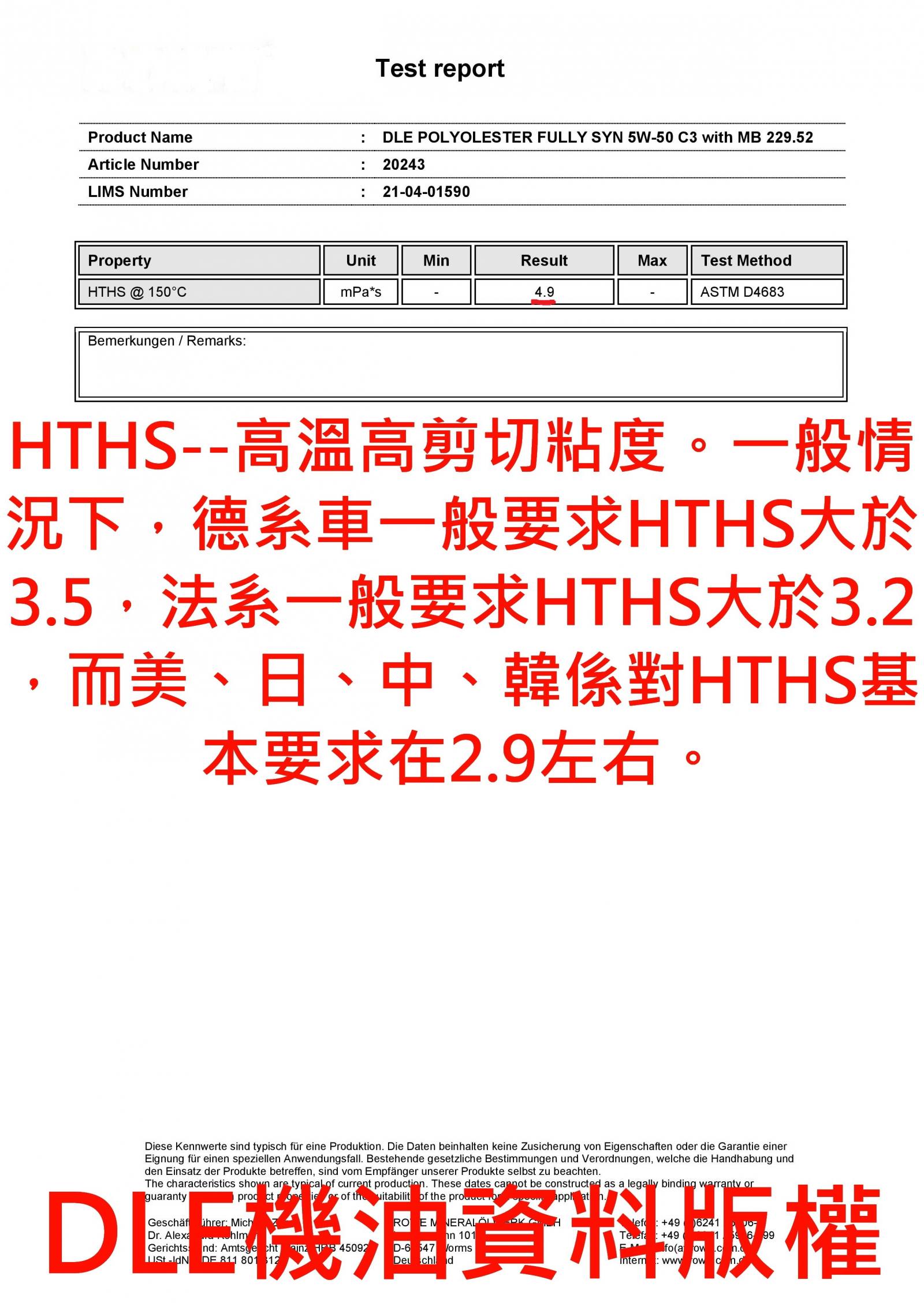 對於0W-20機油的使用觀念,之前的文章有詳細解說。 0W-20黏度機油,比較適用於極寒地區。 0W-20機油在低溫環境下流動性較好,冷車啟動容易。 對於熱帶地區應選擇更耐高溫的機油。 建議選擇0W-40或其他高黏度規格以上,機油品質良好並根據當地氣候選用適合的機油。 在熱帶地區,需要的是在高溫下仍能保持穩定黏度的機油。 比起追求極低的W值,更重要的是確保機油在引擎高溫運轉時能提供足夠的保護。 在高溫下油膜可能會變薄,影響其油膜保護性。 若要使用0W機油,建議優先選擇0W-40或更高黏度規格,並確保是品質良好的機油。 影片的內容提到 1.同樣的引擎,不同的機油建議 美國手冊:針對2022年 Toyota Camry(2.5L引擎),手冊強制要求僅能使用0W-20機油。 澳洲/中東手冊:同一款引擎,在澳洲手冊中列出0W-20僅為選項,同時核准使用5W-30、10W-30甚至15W-40機油。 結論:物理定律並未改變,但法規環境不同。澳洲和中東因為沒有像美國那樣嚴格的CAFE(企業平均燃油經濟性) 罰款,所以車廠會建議使用真正能保護引擎的機油。 2.燃油經濟性vs.引擎壽命 使用超薄機油(如 0W-20)僅能提升約 0.3% 到 0.7% 的油耗表現。 但這種代價是犧牲了引擎的長期耐用度。稀機油在極端高溫或高壓下的油膜強度(HTHS)不足,會加速凸輪軸、活塞環和正時鍊條的磨損。 3. 何謂 HTHS(高溫高剪切黏度)? 這是衡量機油在極端壓力下保護金屬表面的關鍵指標。 0W-20的HTHS通常只有2.6,就像用「面紙」在隔絕金屬摩擦。 5W-40的HTHS則在3.5到4.0之間,油膜強度高出35%到50%。 4. 計畫性報廢 影片提到,0W-20 的設計是為了讓引擎撐過保固期。研究顯示,使用0W-20的引擎在10萬英里(約16萬公里)後會出現明顯磨損,而使用 5W-30 的引擎則依然維持在原廠規格內。 許多獨立技師觀察到,現代引擎(如 Toyota 2AR-FE 或 Honda K 系列)在使用薄機油後,壽命從原本的30萬英里縮短到了15萬英里左右。 5. 直噴引擎與稀薄機油的致命組合 稀薄機油更容易產生「串氣」(Blow-by),導致油氣進入進氣歧管。 在**缸內直噴(Direct Injection)**引擎中,由於沒有汽油清洗進氣門,這些油氣會結焦成積碳,進而引發點火不良與性能下降。 影片總結 在保固期間,如果你擔心保固問題,可以依照手冊使用0W-20並保留所有收據。 保固過後,建議換成5W-30或以上的高品質機油。雖然會損失極微小的油耗表現,但能大幅延長引擎壽命。 如果你住在熱帶地區、時常載重、拖車或激烈駕駛,5W-40或更高黏度規格的機油是更好的選擇。 即便要用0W-20機油,也請查看技術數據表(TDS),應使用HTHS高於2.9或是其他高品質的機油產品。 影片最後提到國外知名修車專家Scotty Kilmer幾十年來稱0W-20機油為「水一樣的油」是對的。 車主應該優先考慮保護資產,而非盲從為了法規而設定的建議。 國外車廠要求車主僅使用0W-20(甚至更稀)的機油,並非為了保護引擎。 而是為了滿足美國的CAFE(企業平均燃油經濟性) 法規,以規避數十億美元的罰款。 使用極稀薄黏度機油,長期使用會對引擎造成的傷害越滾越大。 沒有幾位車評願意挺身而出說出事情的真相,畢竟怕得罪汽車製造廠、經銷商和潤滑油大廠。 代言機油有好處可以拿,背後的利益很龐大。 補充關於DLE機油的HTHS(高溫高剪切黏度)資料。 幾年前有請德國實驗室檢測DLE機油的HTHS數據。 5W-50的HTHS數據檢測出來是4.9。 5W-60的HTHS數據檢測出來是5.6。 DLE機油產品的HTHS數據都遠高於一般市面上販售的機油。 另外關於好的機油就是有好的黏度這點。 有請教德國油廠關於機油品質和黏度是否有關。 他們回覆說並無直接關係。 機油的品質是基礎油和添加劑的質量有關。 黏度大小並不會直接影響品質,是看基礎油的品質和添加劑(在於多元醇酯基礎油研發技術,改善高黏度潤滑性,優於極稀薄黏度機油)。 要避免引擎出問題,務必要使用品質好的機油-新戊基多元醇酯基礎油。 DLE德力機油成份基礎油-選用最好航空新戊基多元醇酯基礎油。 新戊基多元醇酯基礎油(Neopentyl polyol esters)+聚α烯烴基礎油(PAO)。 (第五類基礎油+第四類基礎油)。 全世界航空與航天公認,最好且最新的航空渦輪噴射機引擎機油,使用最新的新戊基多元醇酯基礎油。 遵照航空業發動機渦輪噴射機引擎機油,機油製造成本很高。 以四類和五類基礎油調配的機油不外加礦物油都稱之為全合成機油。 德力拾幾年來都堅持用高品質基礎油,並且持續的提升機油品質,和這些油廠不同,替消費者著想。 到現在則是跟著航空業走,使用最新的新戊基多元醇酯基礎油,就是為了給消費者最好的產品。 |
