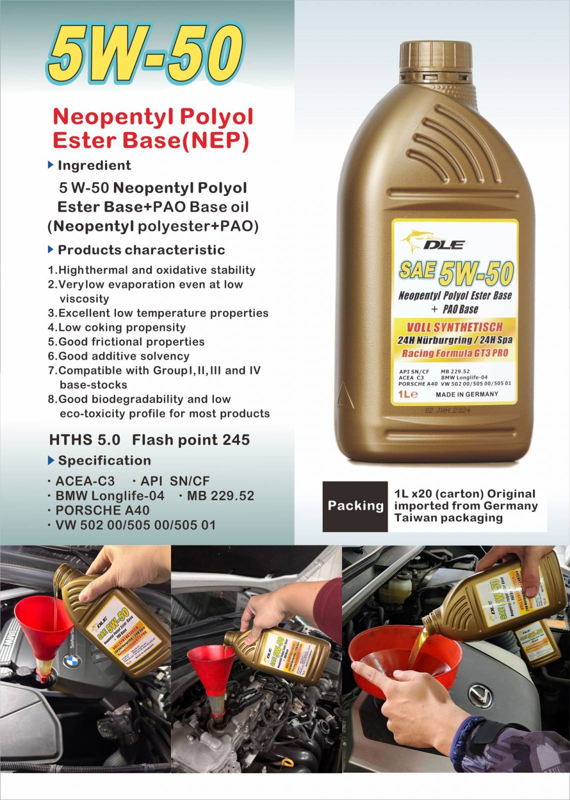 ‧新戊基航空多元酯 Polyol Esters > 機油 > DLE 5W-50 24H GT3 PRO