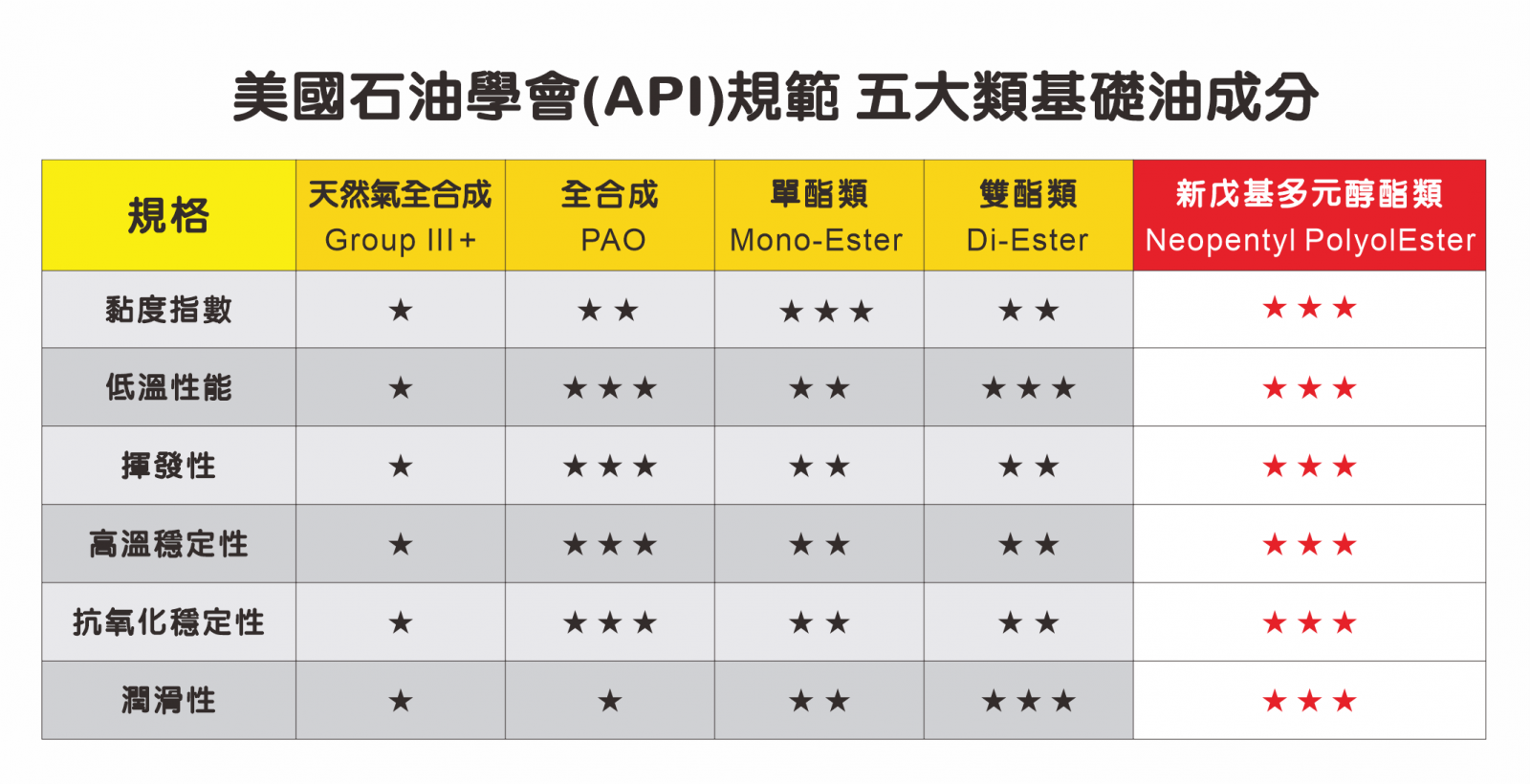 全合成PAO與(高品質多新戊基元醇酯基礎油)結合了非凡的添加劑技術 >> 因此具有極高的抗氧化能力。