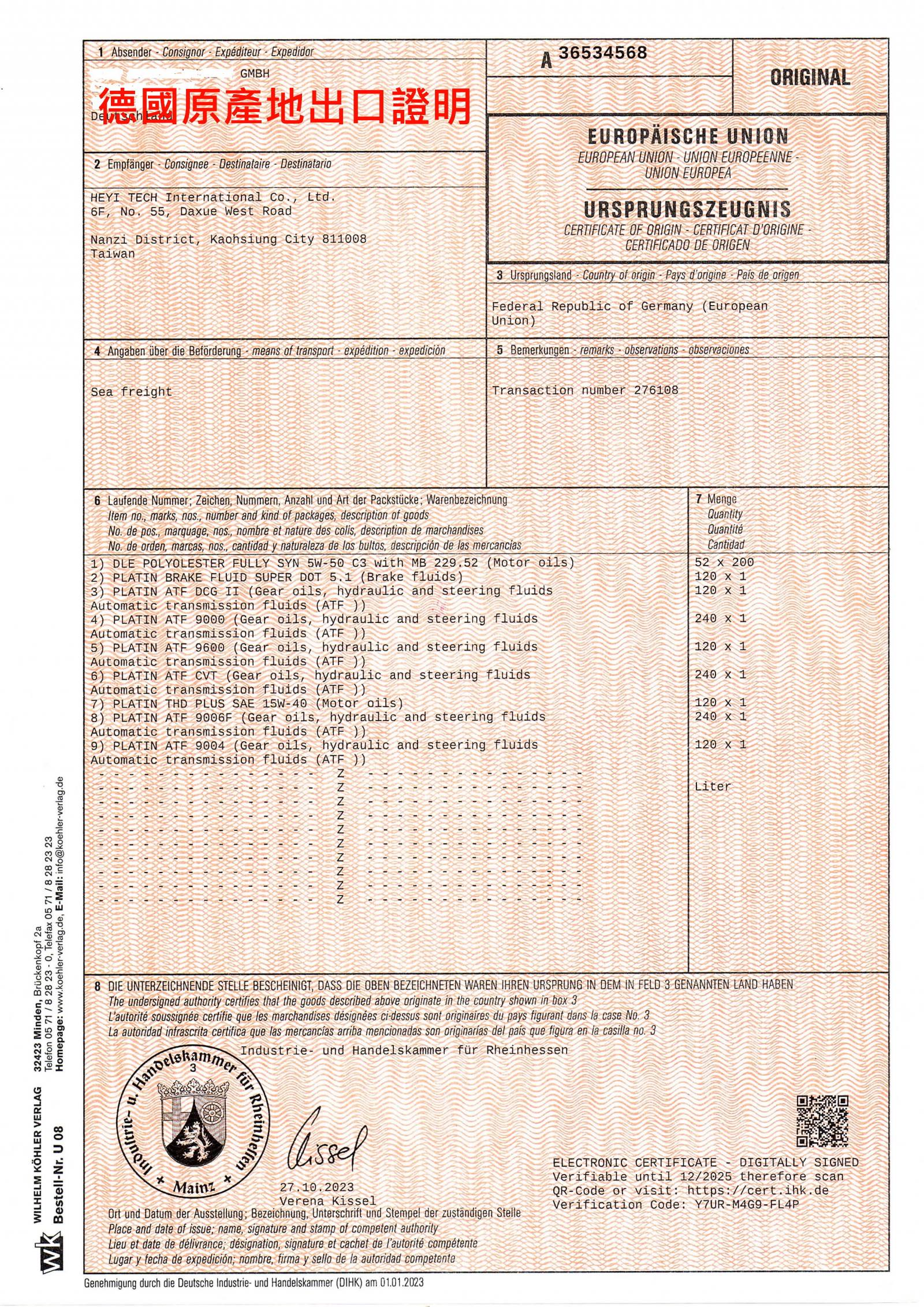 | 毛重 | 1L/瓶; 1LX20 / 箱 (德國原裝進口) |