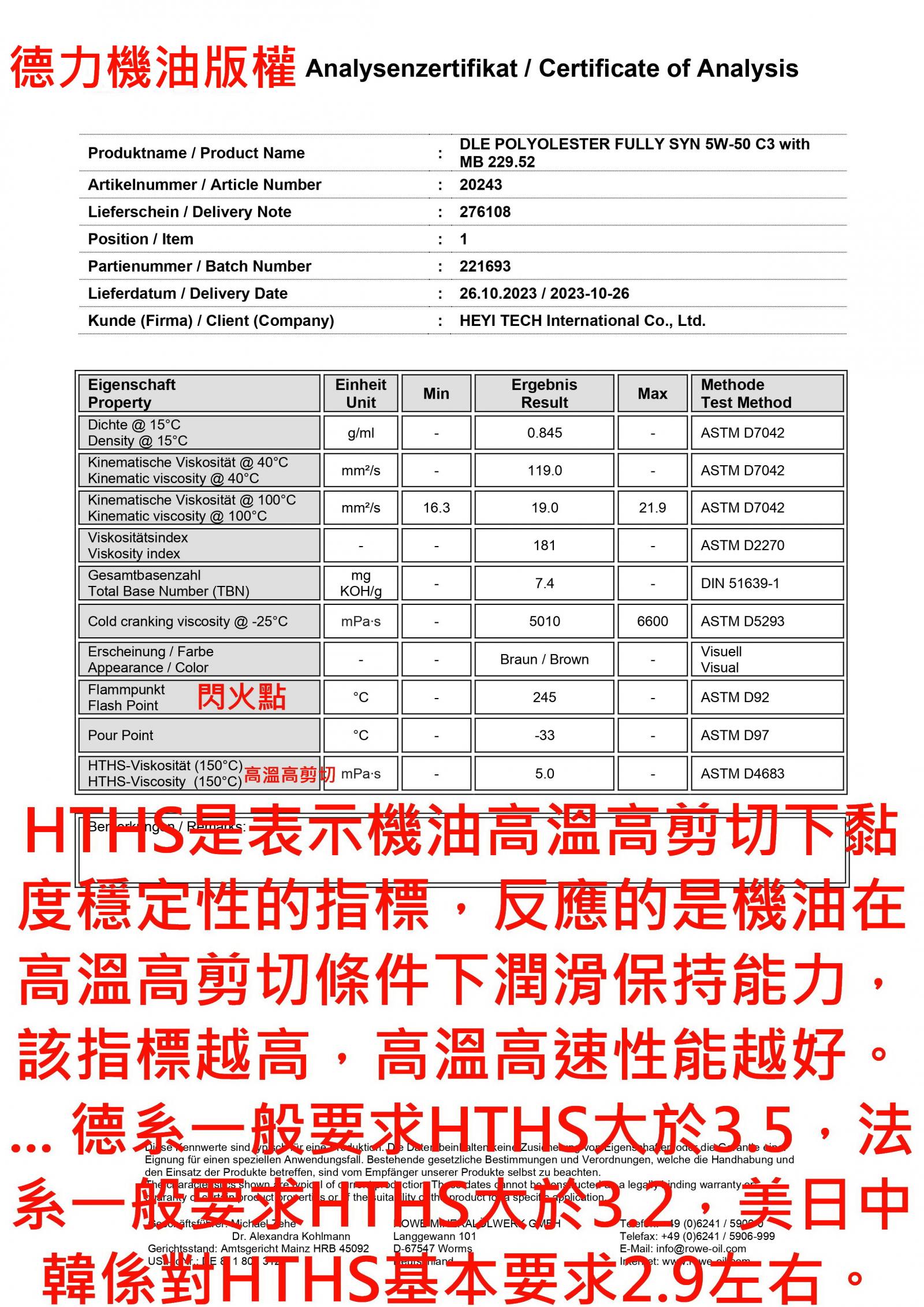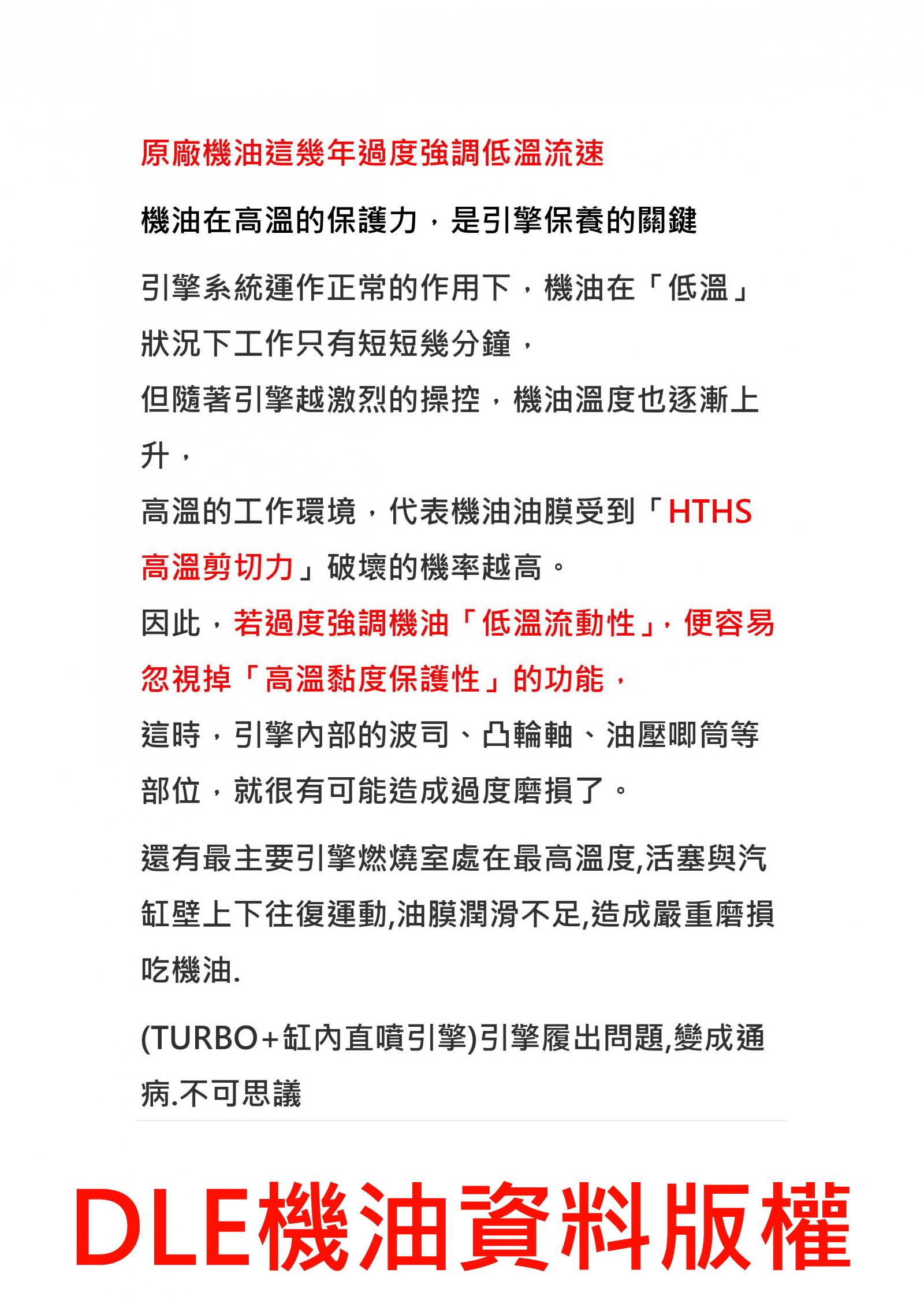 | 成分 | (高品質新戊基多元醇酯基礎油)+聚α烯烴基礎油 (高品質第5類基礎油+第4類基礎油.) 最新24h耐力賽-特殊賽車機油添加劑配方 |