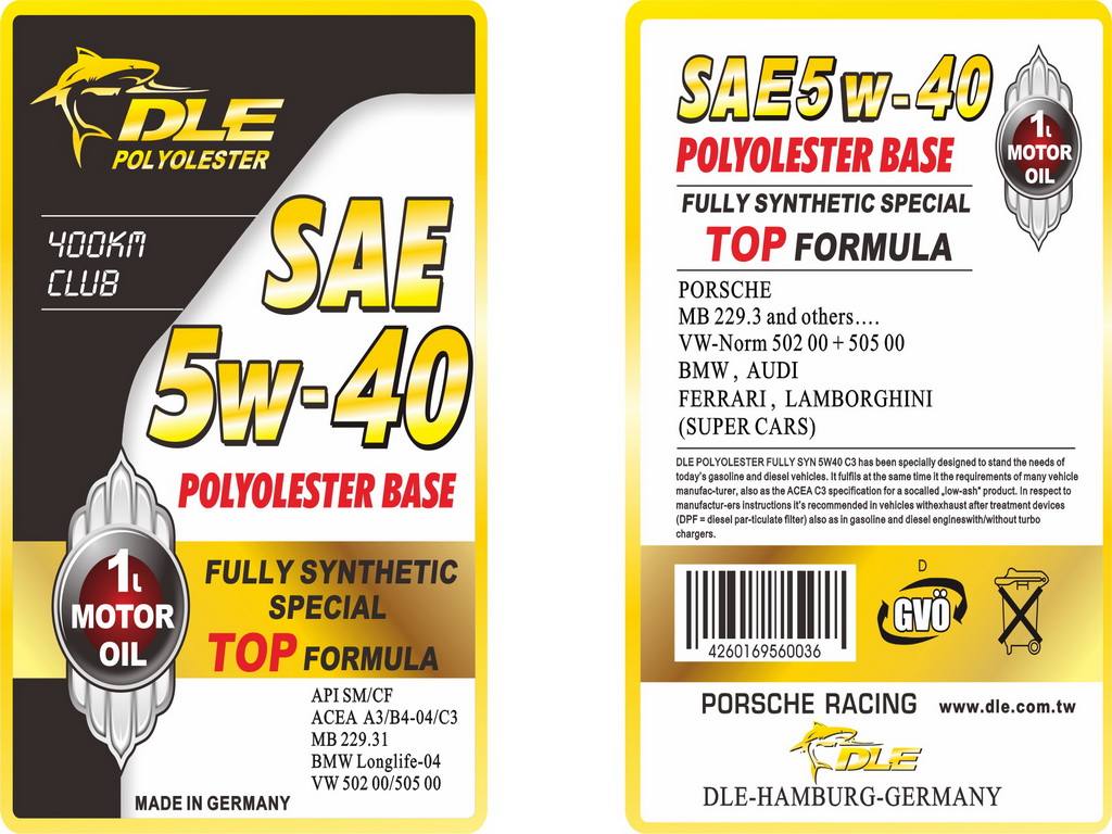 DLE-新產品(5W-50與5W-40)資料德國油廠已經傳來---國內首次突破汽柴油共用.