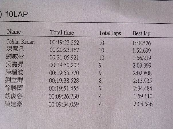 從上星期五一直練車與調整車輛至最好狀況,還是屬於調整與測試階段,全體工作人員合作無間由日亞負責車輛改裝與調教.星期六還跑出1分49秒多老外教練還不滿意.整輛車做最後整理,把該清潔的地方重新清理一次,電腦軟體在重新調教一次.昨天就跑出1分47秒多,跑出4缸引擎最快實力.老外教練很滿意,新手賽也拿第一,差距一圈距離.saker車實力不容忽視-----姚元浩星期五到大鵬灣練車,開saker車跑出1分54秒多他好開心,saker也要多一位新買主,星期六來練車開起來很滿意.入主saker下一位車主.