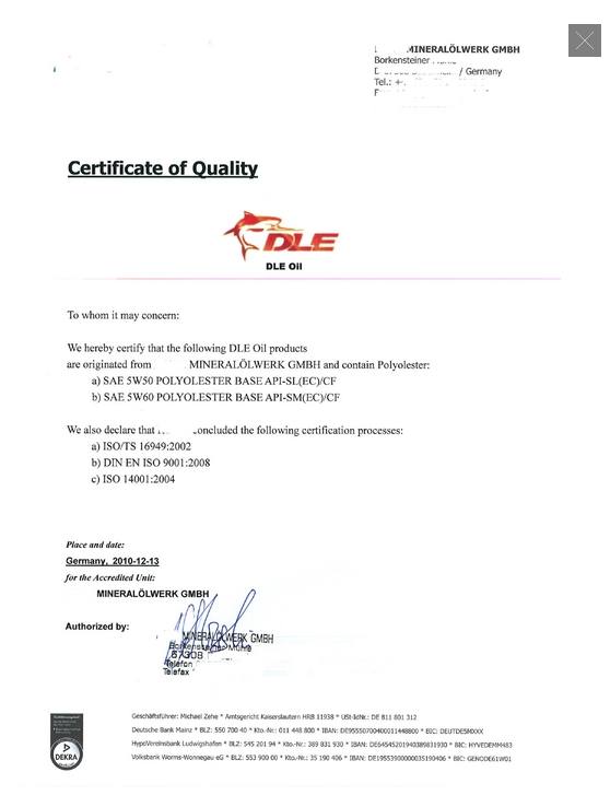 DLE—機油建立在德國紐柏格林賽道,24小時耐力賽.最近不少車友好意介紹雙多元醇酯機油,比我們DLE機油好太多價格比較貴.美國實驗室最新研發,跟賽道比賽還差很遠.國外網站找看看又沒有此機油,只有台灣一家材料行在賣連商標也沒有.要來踢館都沒有關係但是要有依據,不是來隨便發表一篇文章就可以唬人.比較實際的是多元醇酯基礎油早已取代雙酯基礎油,現在很多走單酯與雙酯路線很不服氣,不是一樣都是酯類.多元醇酯機油最大差別就是更耐高溫,基礎油性能特別穩定.(我們DLE是由德國油廠在紐柏林賽道,長期比賽與研發才能有超越一般市售機油品質.有長期比賽才有好用產品上市,這是不變的真理.不是紙上談兵那麼簡單.)