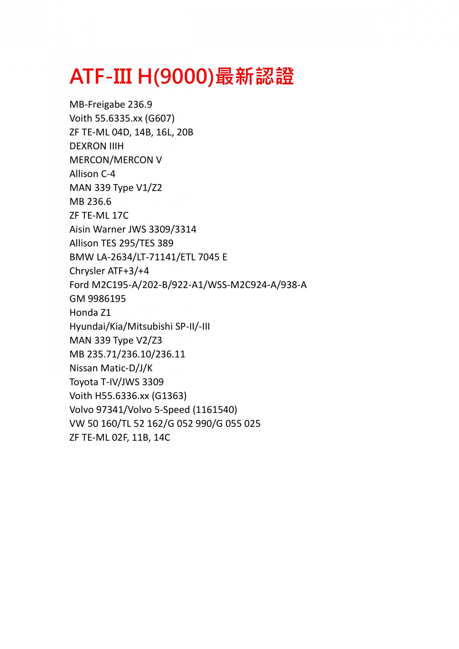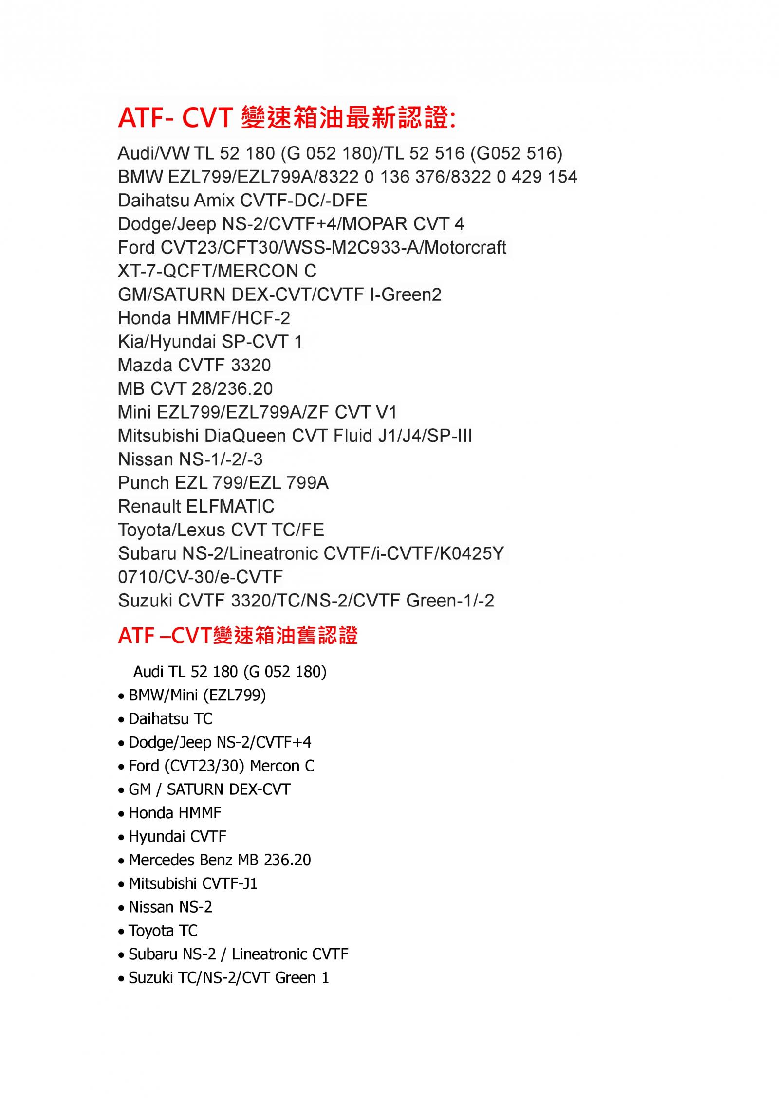 > ATF--變速箱油有最新認證,ATF-CVT與ATF-III H(9000)