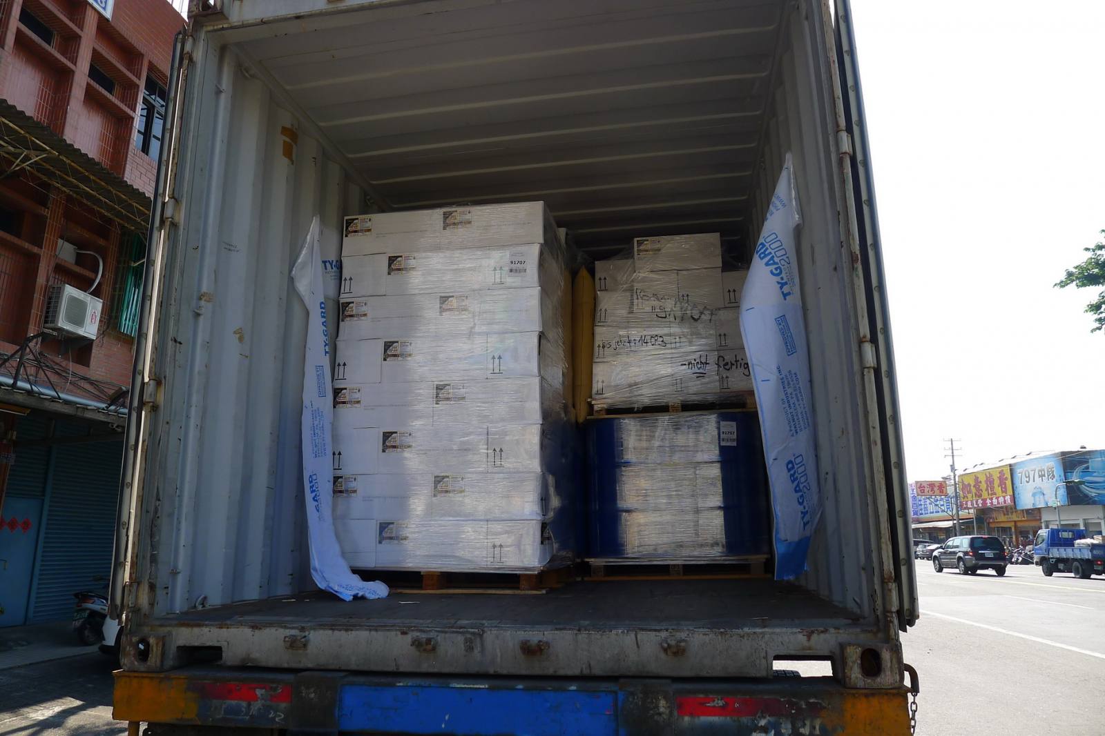 之前產品之間沒有隔著保護袋常常箱子有破損與變形,因為船運海上激烈搖晃會造成箱子與箱子的碰撞.看出德國油廠對出貨的細心---