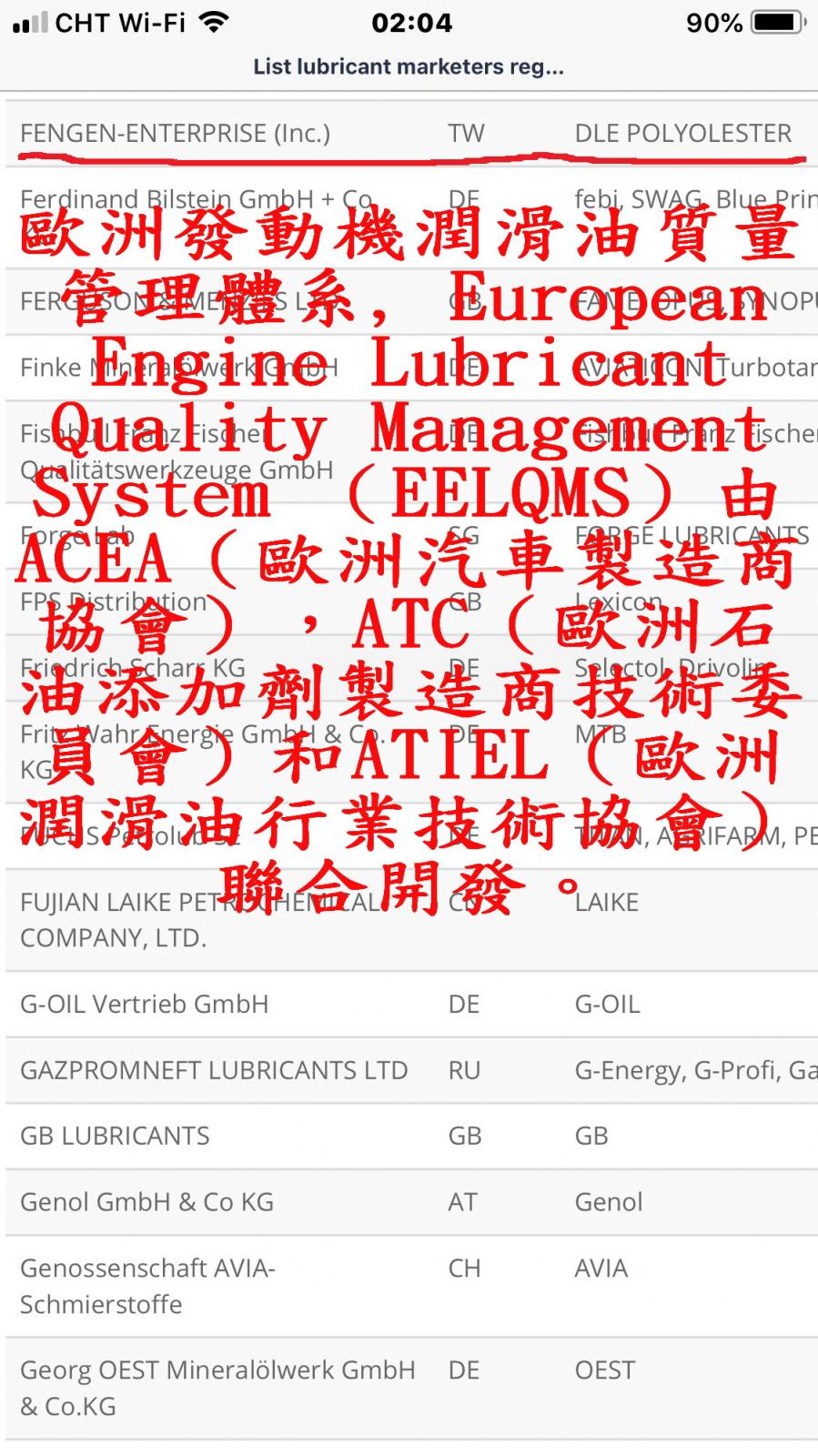 > EELQMS商標註冊(全球優質油廠生產品牌全在這裡審核註冊)--歐洲發動機潤滑油品質管理系統