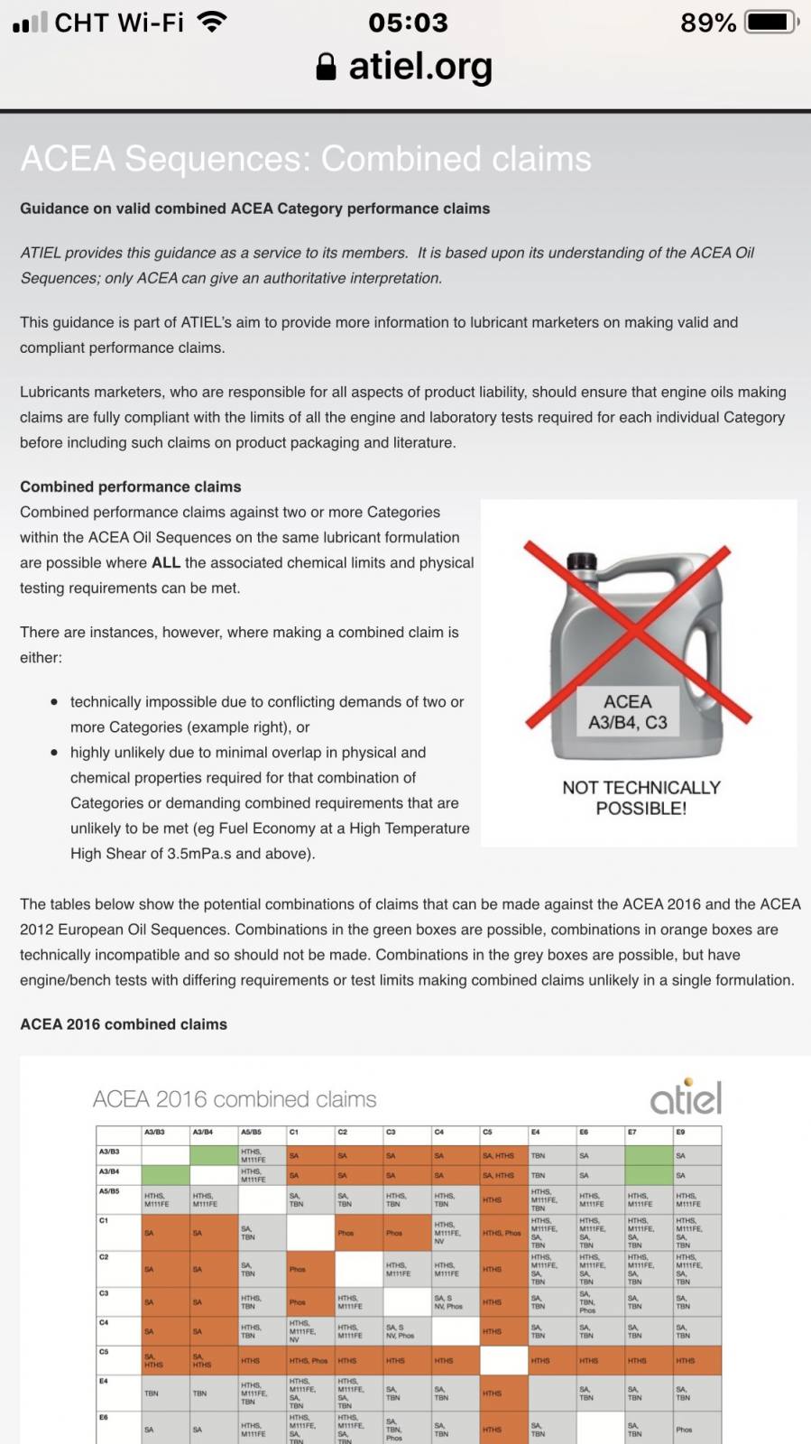 其實我們兩種產品可以同時滿足兩者,沒有辦法市售機油沒有像多元醇酯這樣標示.這幾個月和ACEA溝通寄一堆文件來,裡面有商業機密請我們不要公開.(我們是OEM品牌ACEA要求製造廠資料,也請德國油廠經理幫忙.寄去ACEA沒有再要求甚麼)API是比較簡單.