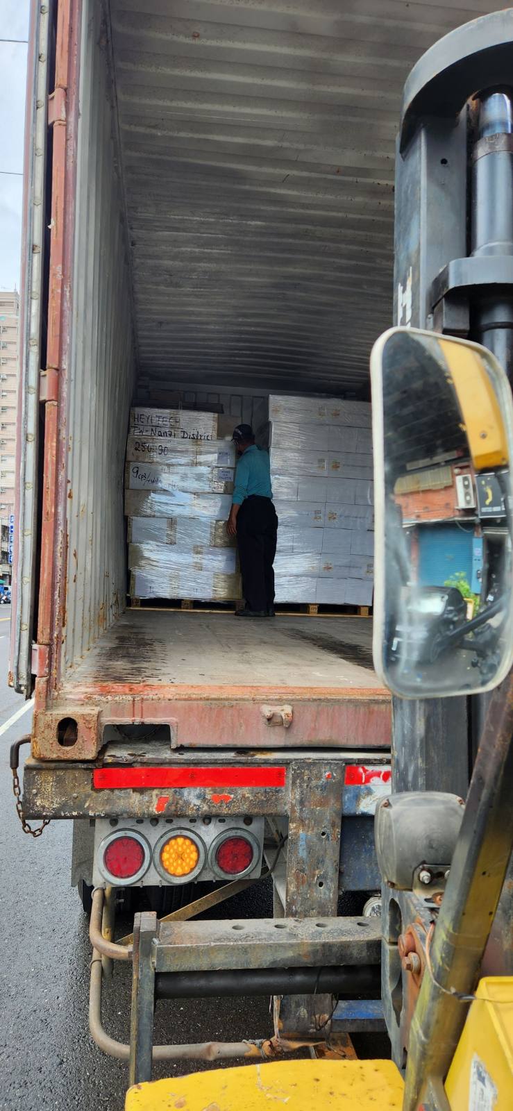 下午順利拆貨櫃,剛好下大雨,感謝主,順利完成。看到5W-60 24H GT3 PRO機油外箱貼標是新的,放心.