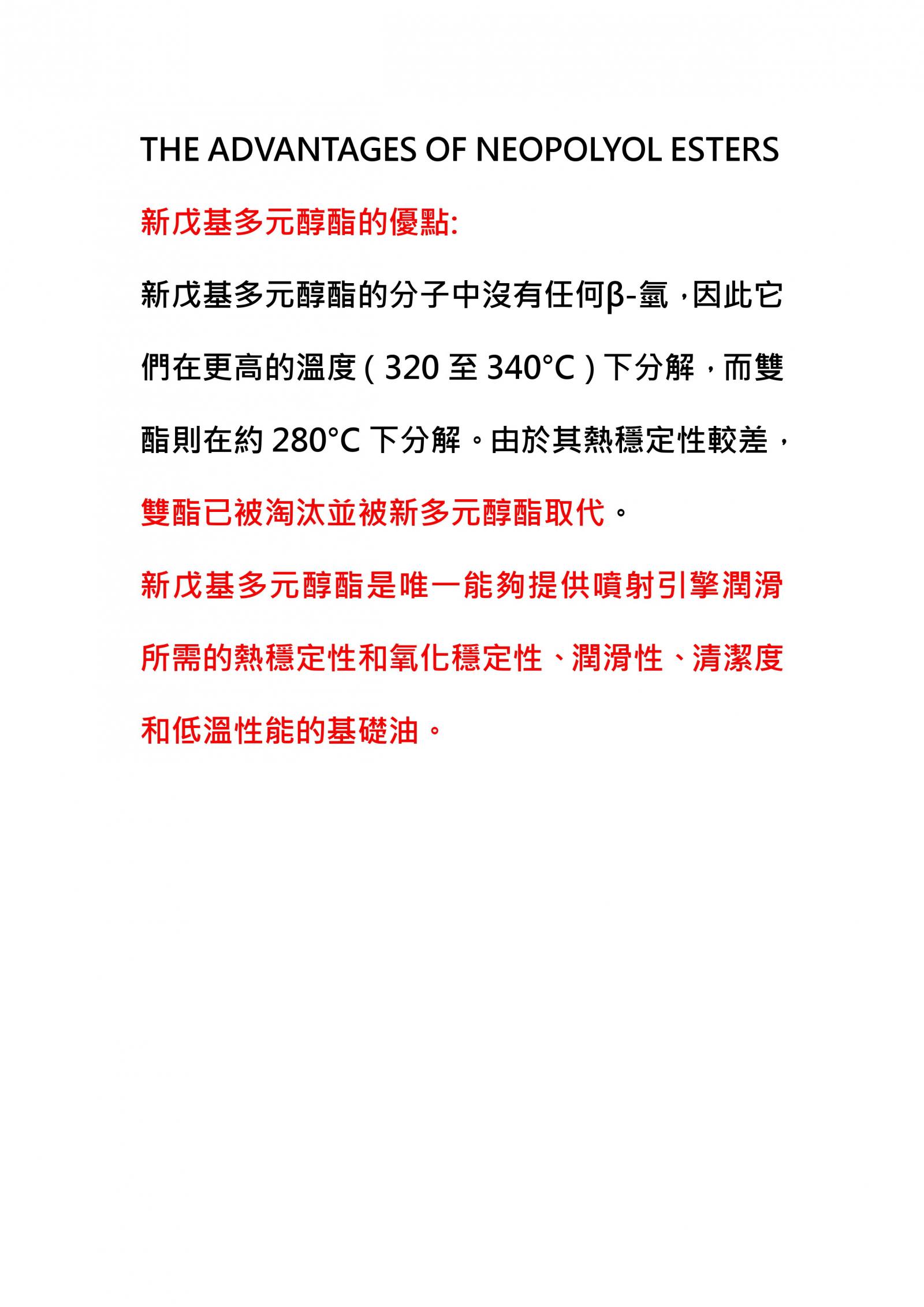 全世界最新航空噴射渦輪引擎潤滑油-新戊基多元醇酯基礎油的優點及應用