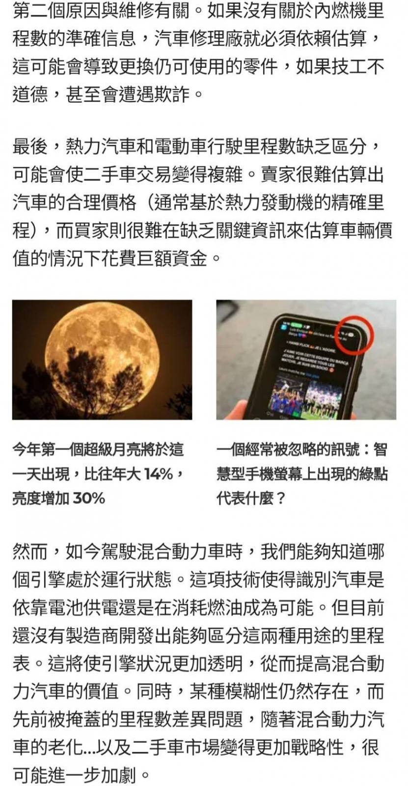 引擎里程數計算不太準確,市區用電行駛,里程引擎卻沒有記錄。