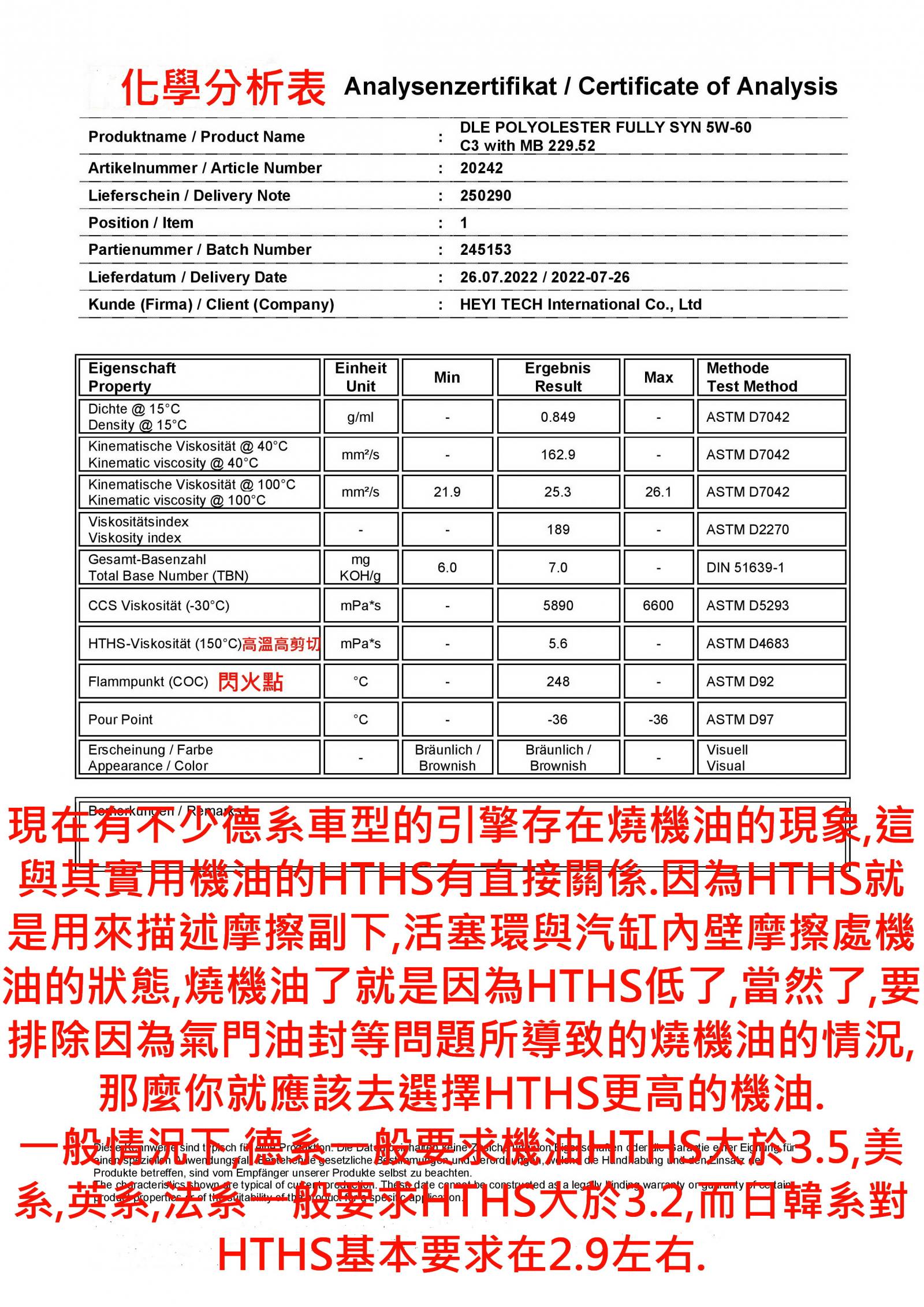此亦為所謂 「低灰分」產品的ACEA C3規格,適合於今日多數汽油及柴油引擎車輛使用。