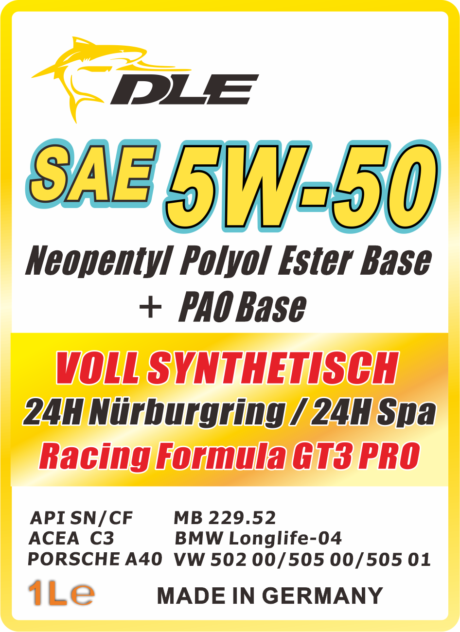 ‧新戊基航空多元酯 Polyol Esters > 機油 > DLE 5W-50 24H GT3 PRO