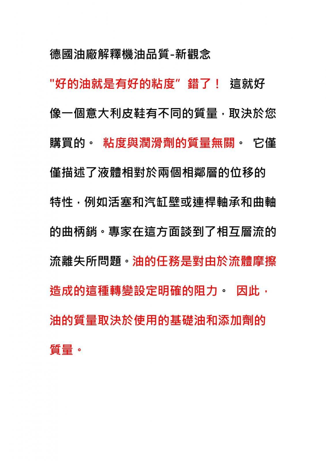 關於酯類油的特性 一再強調這對消費者來說非常重要,只有酯類油做得到。 在一般的情況下,酯類油會在兩接觸面形成一層連續的油膜。 這層油膜有液態潤滑的作用,防止金屬與金屬間直接接觸,減少摩擦。 潤滑油能否提供液態潤滑,取決於能否在兩個金屬表面上形成不破裂的油膜。 當這層油膜在高強度的情況下破裂,便會造成阻力和摩擦。 能在其他潤滑油失效的條件下仍然保持優越的潤滑作用,這便是酯類油在臨界潤滑情況下的優勢。 酯類油優點多,其極性強、耐高溫、蒸發損失低、潤滑性好,且有優異的熱氧化安定性和低溫流動性。 熱安定性能好,單純從熱分解溫度來看,雙酯類油一般在280度左右,醇酯類油超過300度。 這跟其分子結構有關,以新戊基多元醇酯化而來的全阻化酯,分解溫度更高。 容易吸附且穩定的油膜,極性結構賦予酯類油特殊的潤滑表現,容易吸附在界面上形成穩定的油膜。 即使冷車狀態也不至於完全回流,提供很好的低溫保護。 酯類分子中所含氧元素使它具有正電極,含氫元素使它具有負電極。 由於電極作用,可以使酯類分子吸附在金屬表面,形成一層稱為黏附分子油膜的油層。 正是這層黏附分子油膜使酯類油從其它因黏性而形成油膜的油中脫穎而出。當引擎啟動的時候,潤滑油性能的好壞就更容易辨別了。 那些依靠黏度而形成油膜的潤滑油,在引擎停止工作的時候會從金屬表面流走。 當引擎再次啟動時,兩金屬表面的油膜已經消失。 相反,那些不是依靠黏度來實現液態潤滑的黏附分子油膜即使是在引擎停止工作後,它也能夠存在於在兩金屬表面之間。 也就是說以酯類作為基礎油的潤滑油,即使引擎停下來,也可以對引擎有著不間斷的保護。 在城市中駕車,經常會走走停停。 此時,車的引擎承受的負荷比賽車時還大。 要保護好它,挑選合適的機油是十分關鍵的。 潤滑油是由基礎油和添加劑組成的,其中基礎油約佔了70-95%以上的比例。 台灣的氣候炎熱,不適合使用稀薄的機油。 選擇品質好的機油很重要。 好的油就是有好的黏度。 關於這點,有請教德國油廠關於機油品質和黏度是否有關。 他們回覆說並無直接關係。 機油的品質是基礎油和添加劑的質量有關。 黏度大小並不會直接影響品質,是看基礎油的品質和添加劑(在於多元醇酯基礎油研發技術、改善高黏度潤滑性、優於極稀薄黏度機油)。 選購真正全合成機油,可以增強引擎動力提升。 |