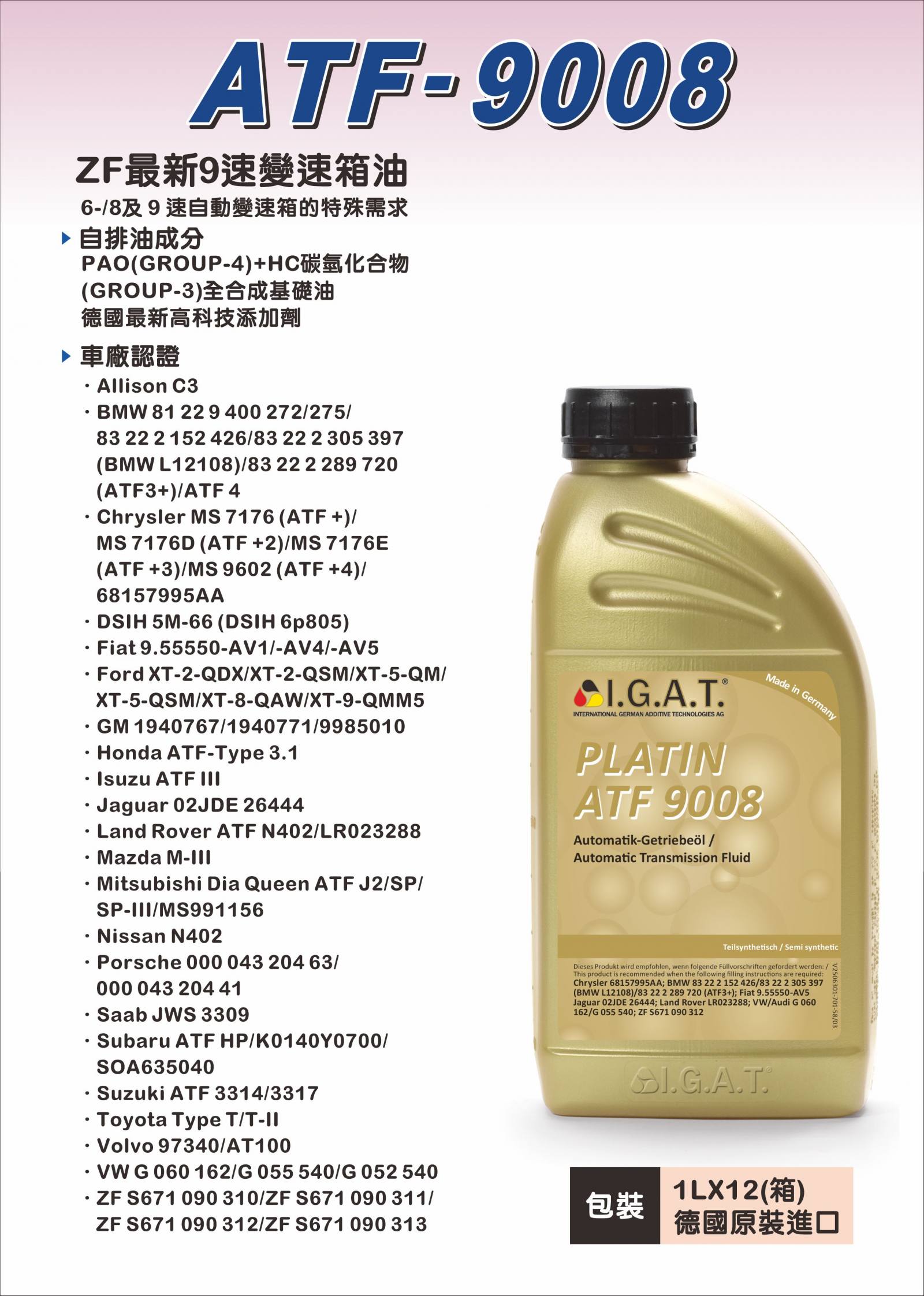 IGAT(NEW 9 SPEED) PLATIN ATF 9008 全合成自排油