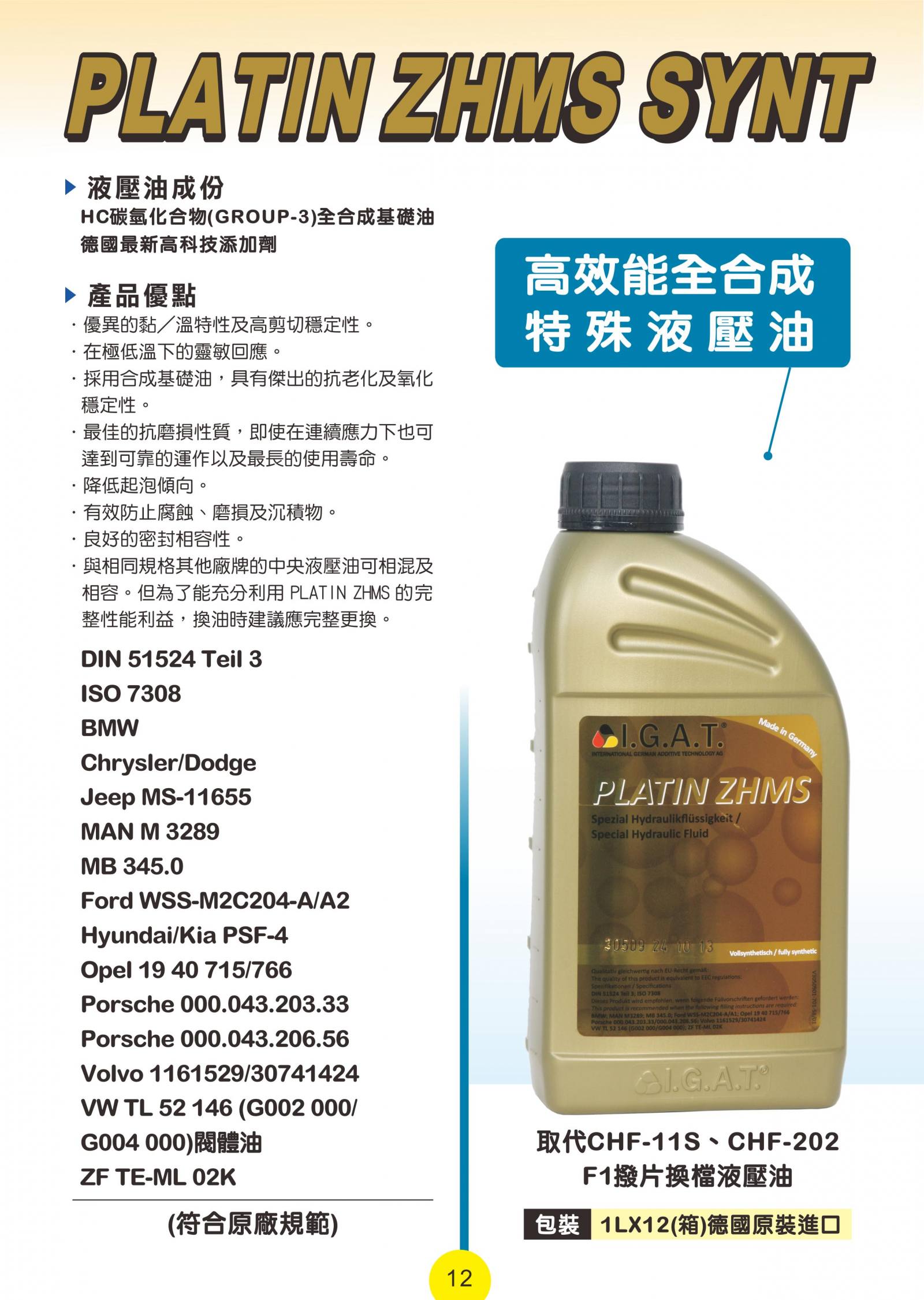 IGAT PLATIN ZHMS 高效能全合成特殊液壓油